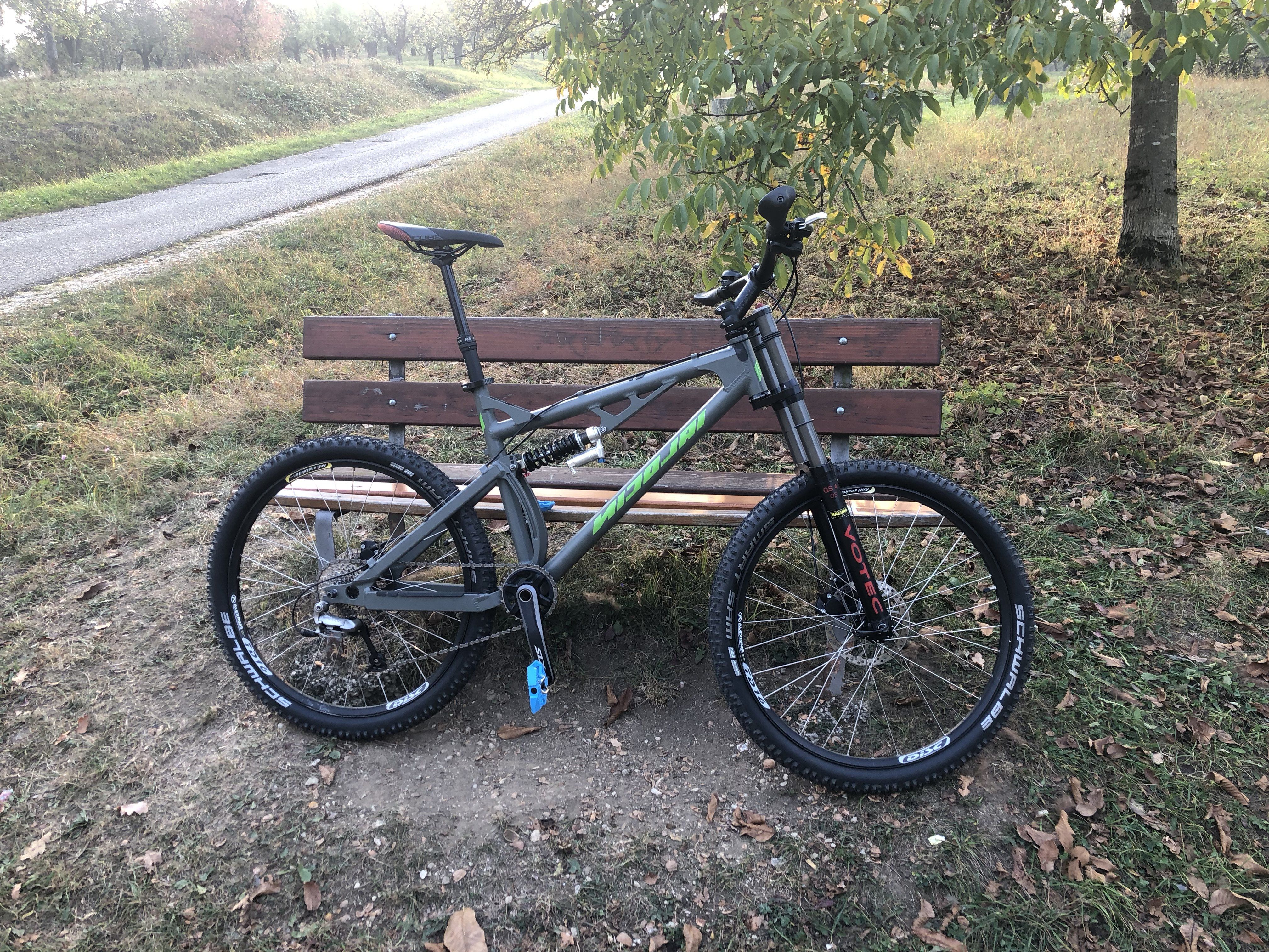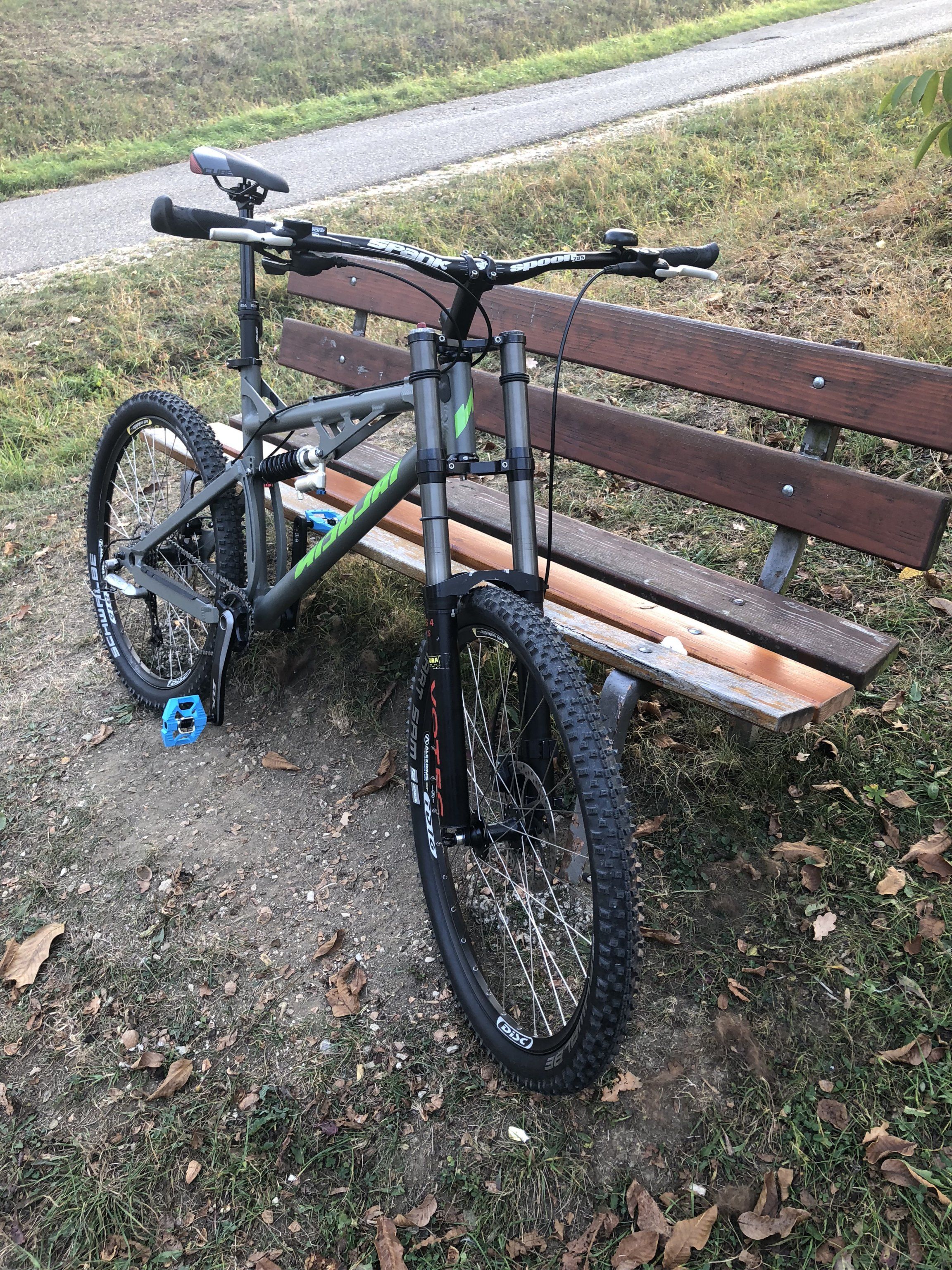 Bis heute ist der Aufbau unverändert. fast. nur bei der Gabel ist schon die Dritte im Einsatz - obwohl das ganze Rad aus verschiedenen Gründen bisher nicht mehr als ca. 300 Km runter hat. Die Carbongabel war eher so ne Kopfsache, danach war ne 100mm Fox drin. und seit diesem Sommer Stahl.