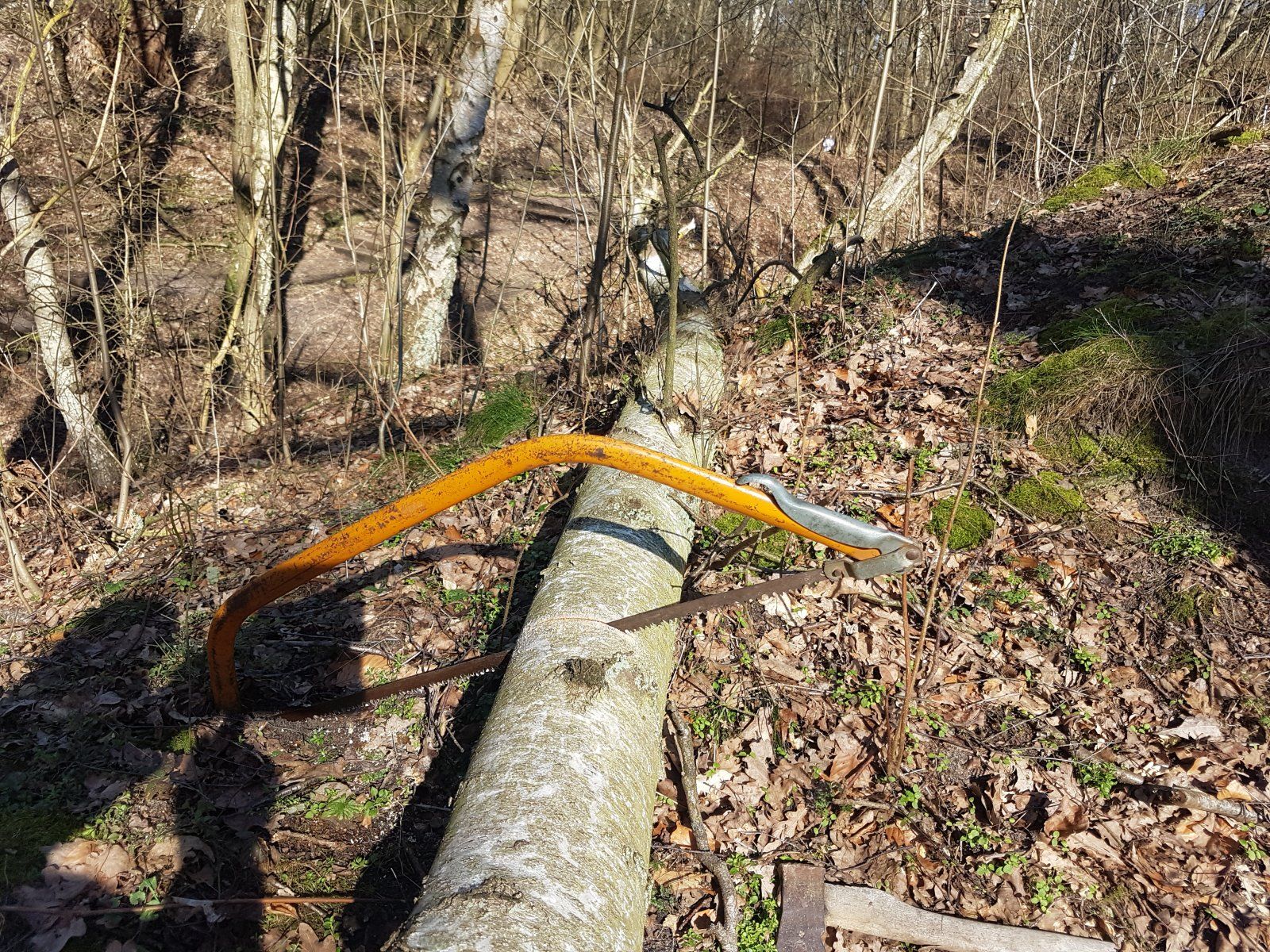 Schließlich musste ich den Stamm zentral über den Trail durchsägen, und das war absolut Schwerstarbeit, siehe Foto.