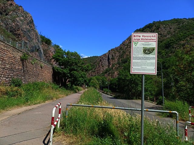 Auf die geschützten Würfelnattern aufpassen. Die halten sich bloß nicht an den Bereich, wo die Schilder warnen. Hab mal ne groß fast überfahren, natürlich in ner nicht einsehbaren Kurve.