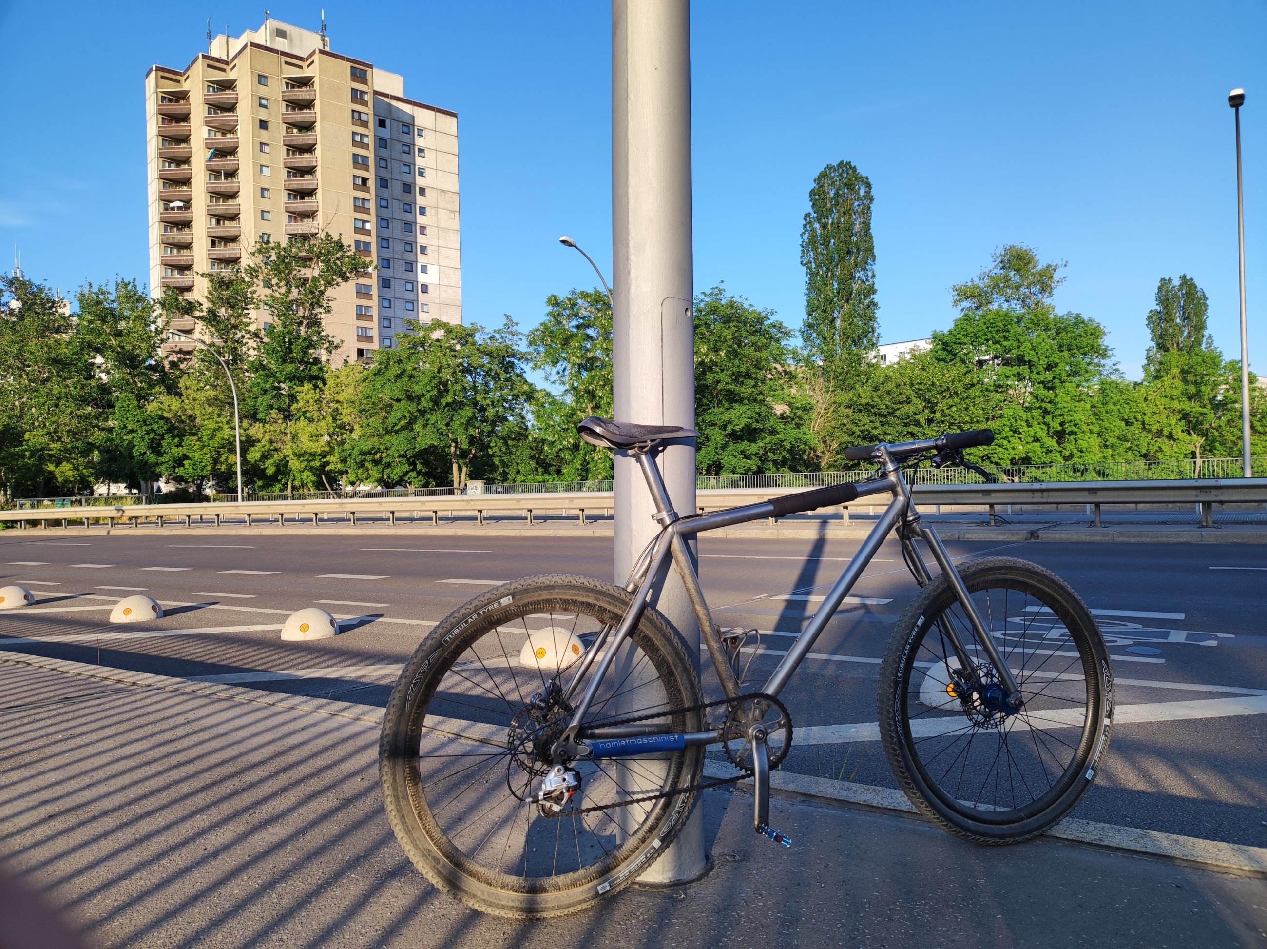 Das Rad war mein erster gezielter Titanaufbau (2014-16) mit unzähligen nachträglichen Variationen, alle Teile sind ausschliesslich über kleinanzeigen nach langer Überlegung und Sparen gekauft. die aktuelle Version (seit heute) ist erstmals über 8 kg, so wie abgebildet, mein "Lastenrad" Prototyp für den Sommer. Die Reifen heißen Detonator, keine Ahnung , was das mit Radfahren zu tun haben soll. Mehr später.Anhang anzeigen 2156287Anhang anzeigen 2156271Anhang anzeigen 2156272Anhang anzeigen 2156276Anhang anzeigen 2156277