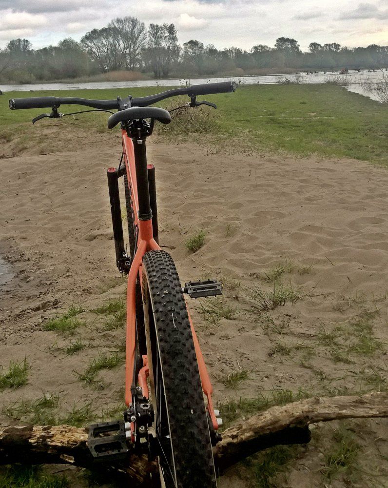 Reifenfreiheit in der Seriengabel vollkommen ausreichend, an der Sitzstrebe ist auch ausreichend Platz, an den Kettenstreben ists aber sehr eng, 3-4 mm auf jeder Seite ich bin mir unsicher ob ich das so lasse oder ob ich mir nen etwas schmaleren Hinterreifen suche.