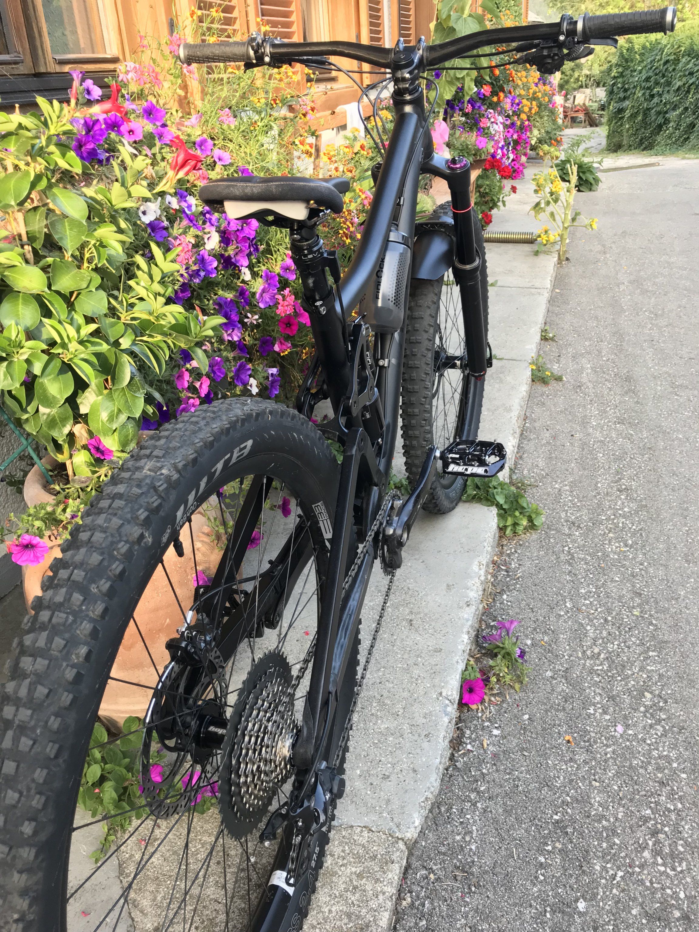 Neu sind, nach langer Abstinenz, Flats von Hope (die Fahrtechnik jubiliert), eine 11-46 Kassette, Dächle Scheiben und eine mini Flasche, die sogar in den S-Rahmen passt. Dafür habe ich die Führung zuhause vergessen :lol: