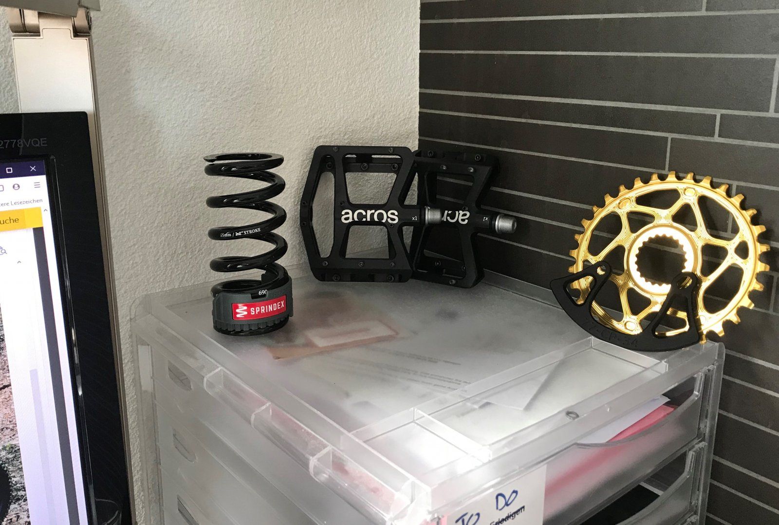Habs in Schwarz als MX mit Fox 36, DHX Coil, Newmen SL A30, XT, etc. bestellt. Dazu liegen die Sprindex Feder, das ovale Absolut Black KB in Gold, und der 77 Design Taco bereit. Die Schaltung ist erst Ende April lieferbar, wollte aber kein SRAM. Die Bremse tausche ich dann, so dass am Chromag die neue XT und am Glen meine bestehende Saint verbaut wird. Dann ist alles schwarz ausser dem Kettenblatt, den Standrohre und den Hydraulik Anschüssen der Saint (alles in Gold).