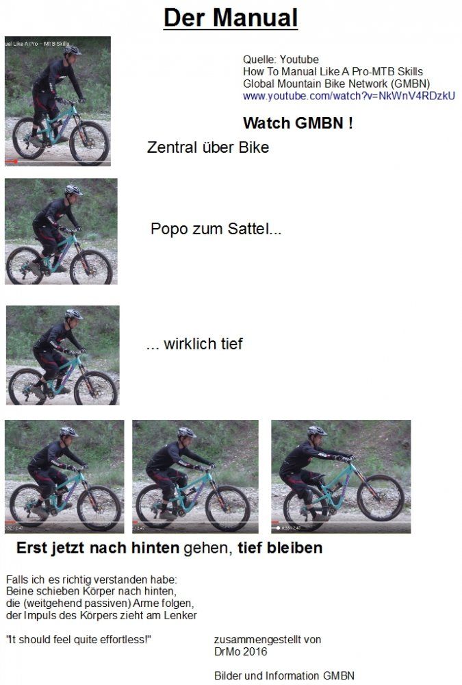 Vielleich ist der Manual eine unterschätzte Fahrtechnik, ist dieser doch die Grundlage zur Vorderradentlastung und zum Bunny-Hop. Darauf baut Vieles auf, ob auf dem Trail oder beim Springen. Soweit zu meiner Motivation.