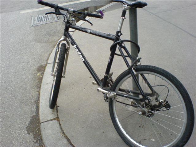 man beachte die tolle Gepäckträgerbefestigung und die Stellung des Schnellspanners vorn etc. etc.