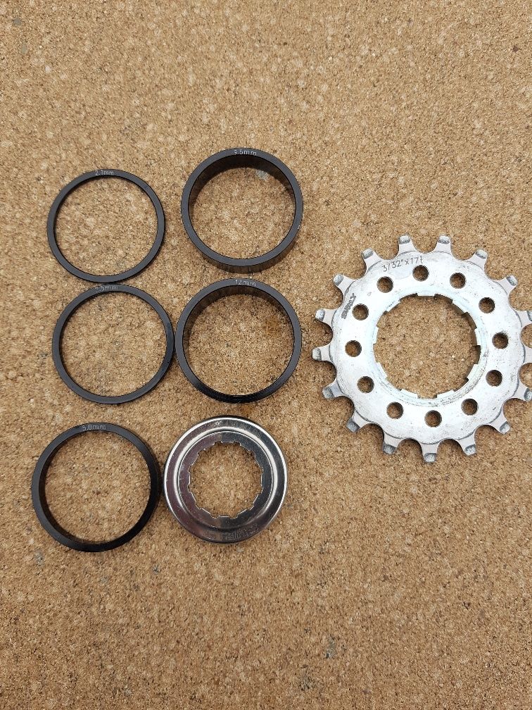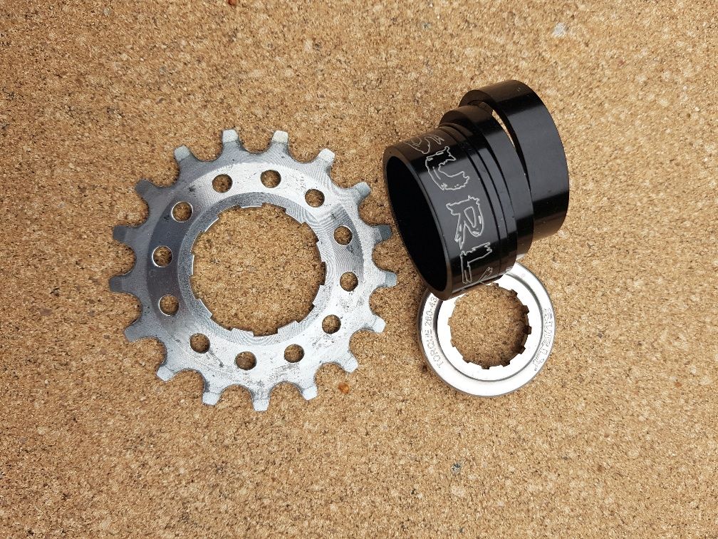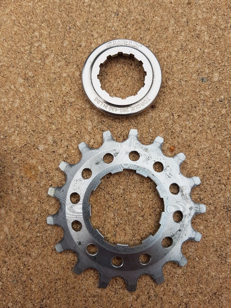 Dazu den enstprechenden Lockring aus Edelstahl und ein 17er Ritzel von Surly, welches ich ca. 1.000km gefahren habe.