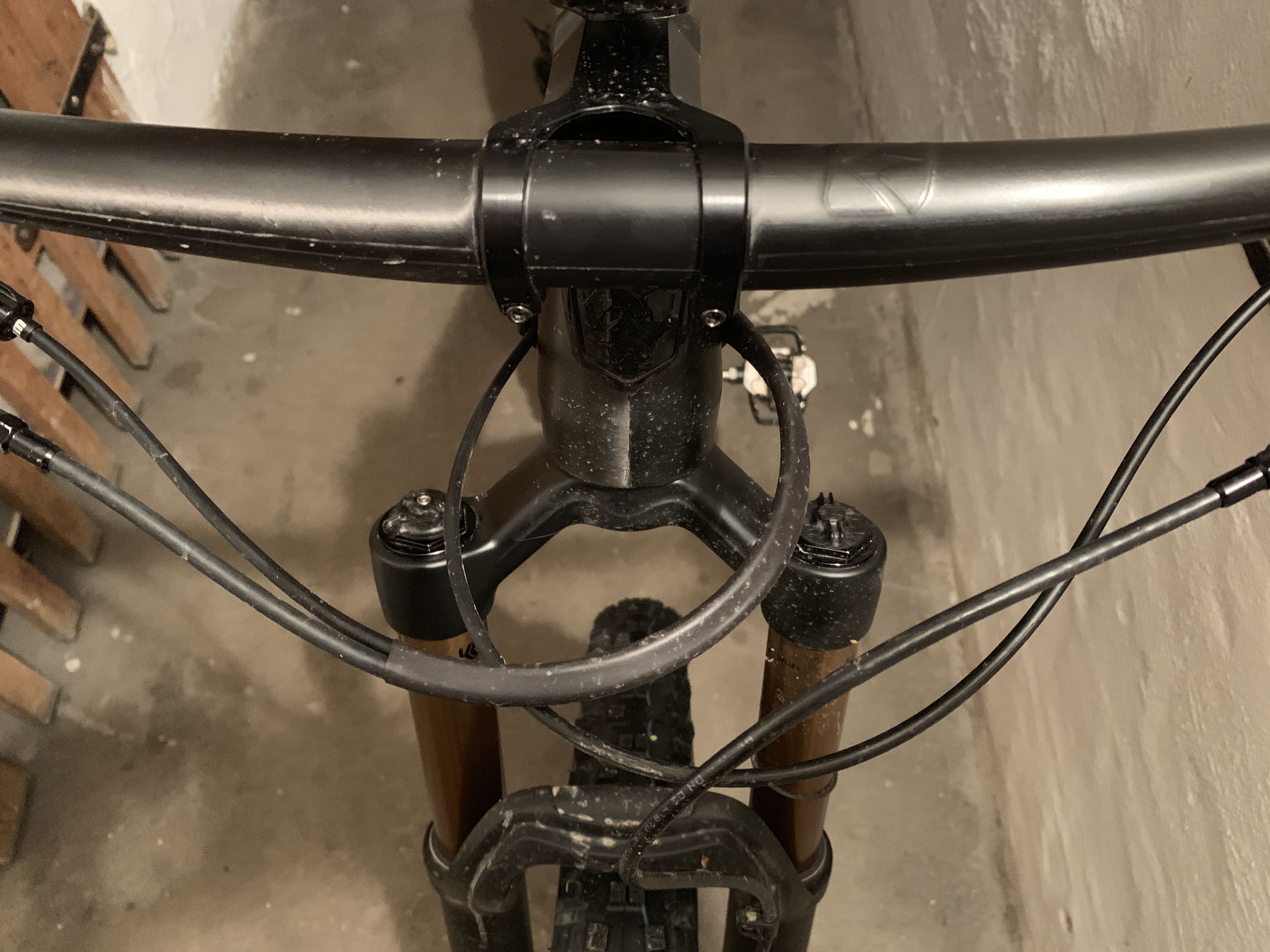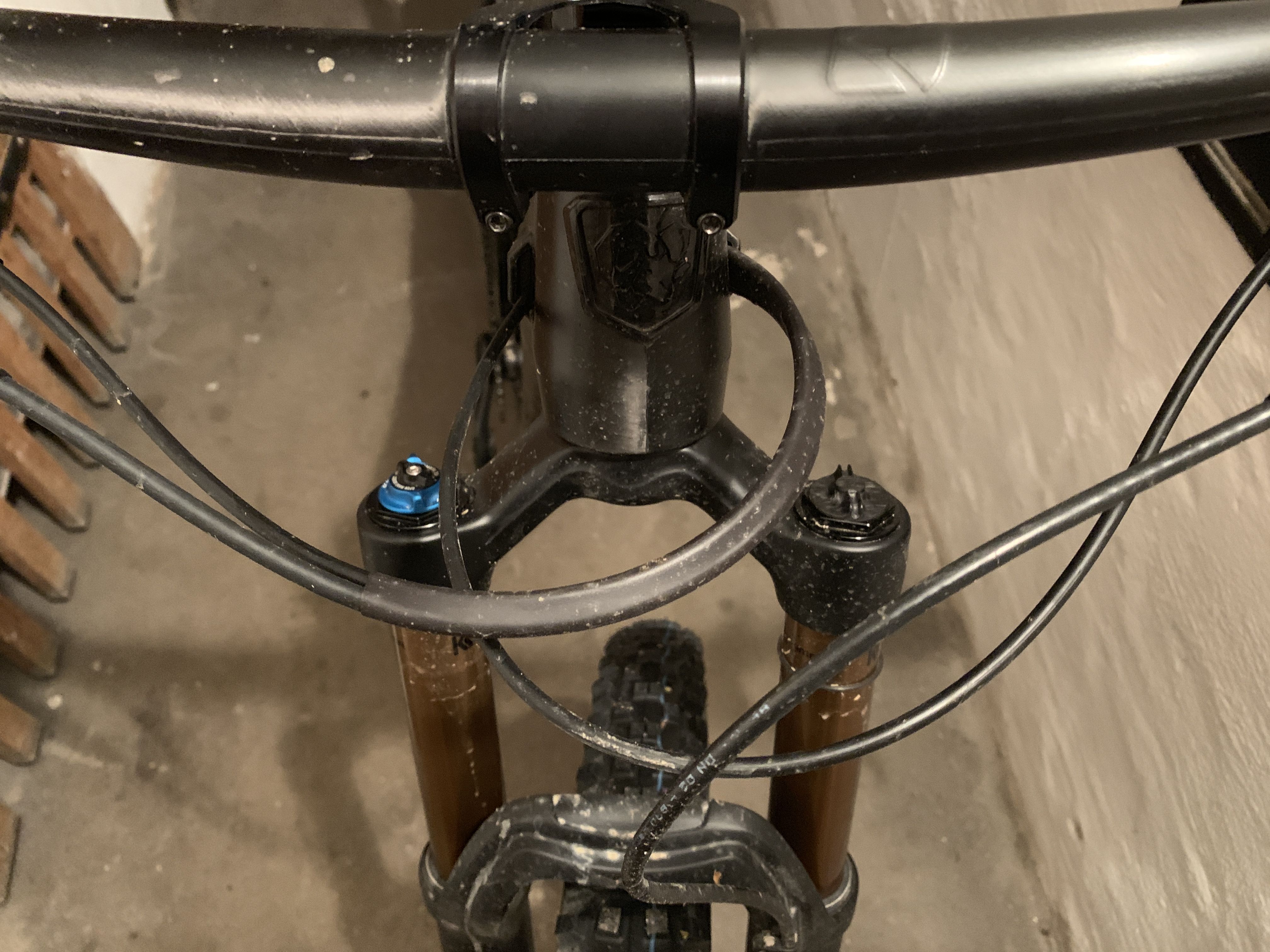 Hinten habe ich die Bremsscheibe inzwischen gegen eine 180er getauscht (reicht locker und reduziert dern Adapter-Turm), die Fabric "Flaschenhalterschrauben" sind einem S-Works Ribcage mit SWAT-Tool-Halterung gewichen und die Verstellhebel des Dämpfers werde ich noch schwarz eloxieren.