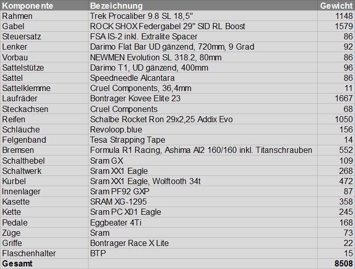 Wie schafft ihr das auf solch tolles Gewicht zu kommen? Ich erreiche trotz Lauffork nur 9,7kg..... allerdings 21,5zoll und kein SL Rahmen.