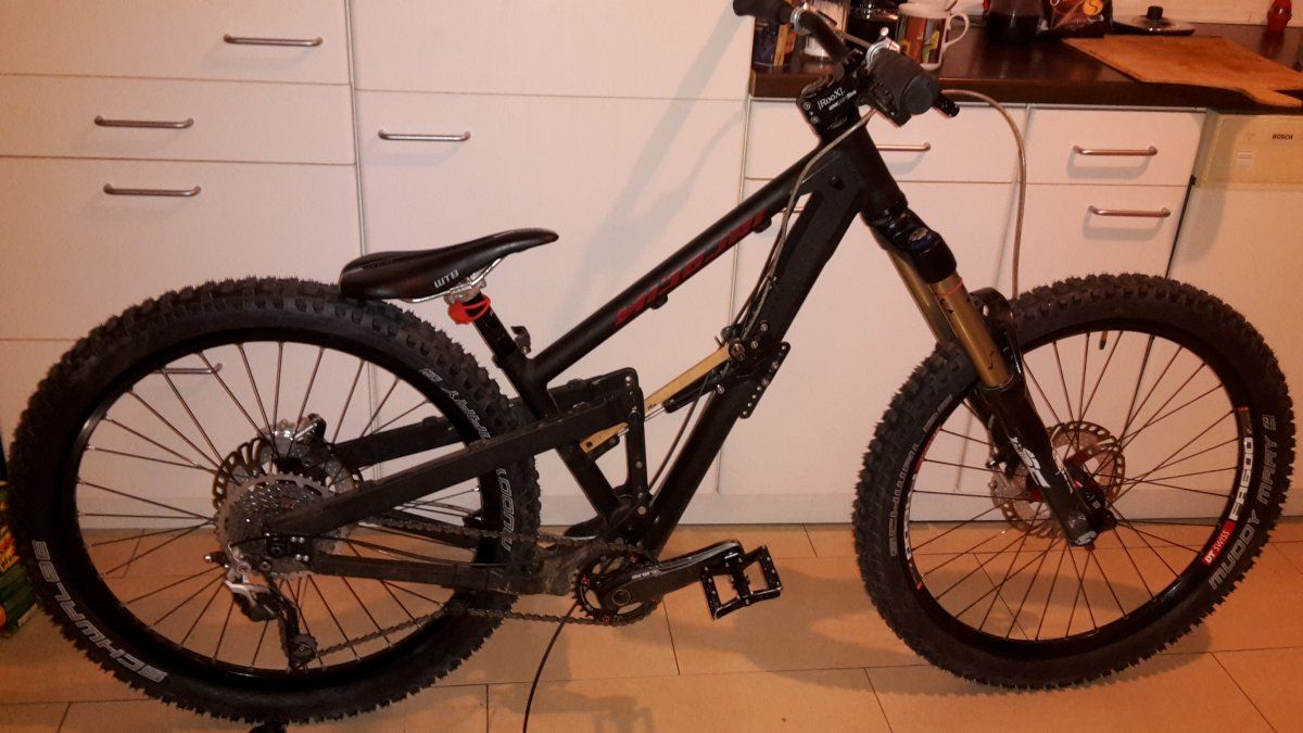 Reifen kann nicht an den Rahmen stoßen, macht null Geräusche, netmal bei Sprüngen. Allerdings noch keine FR/DH Taufe.