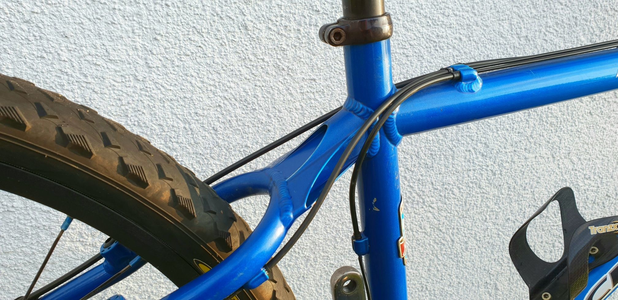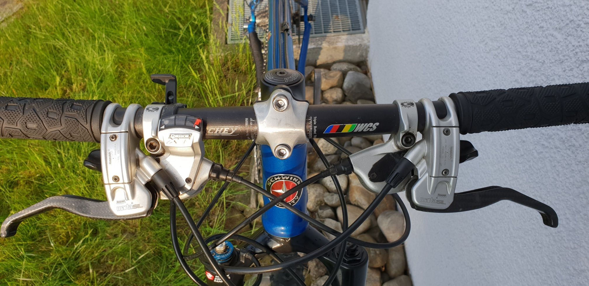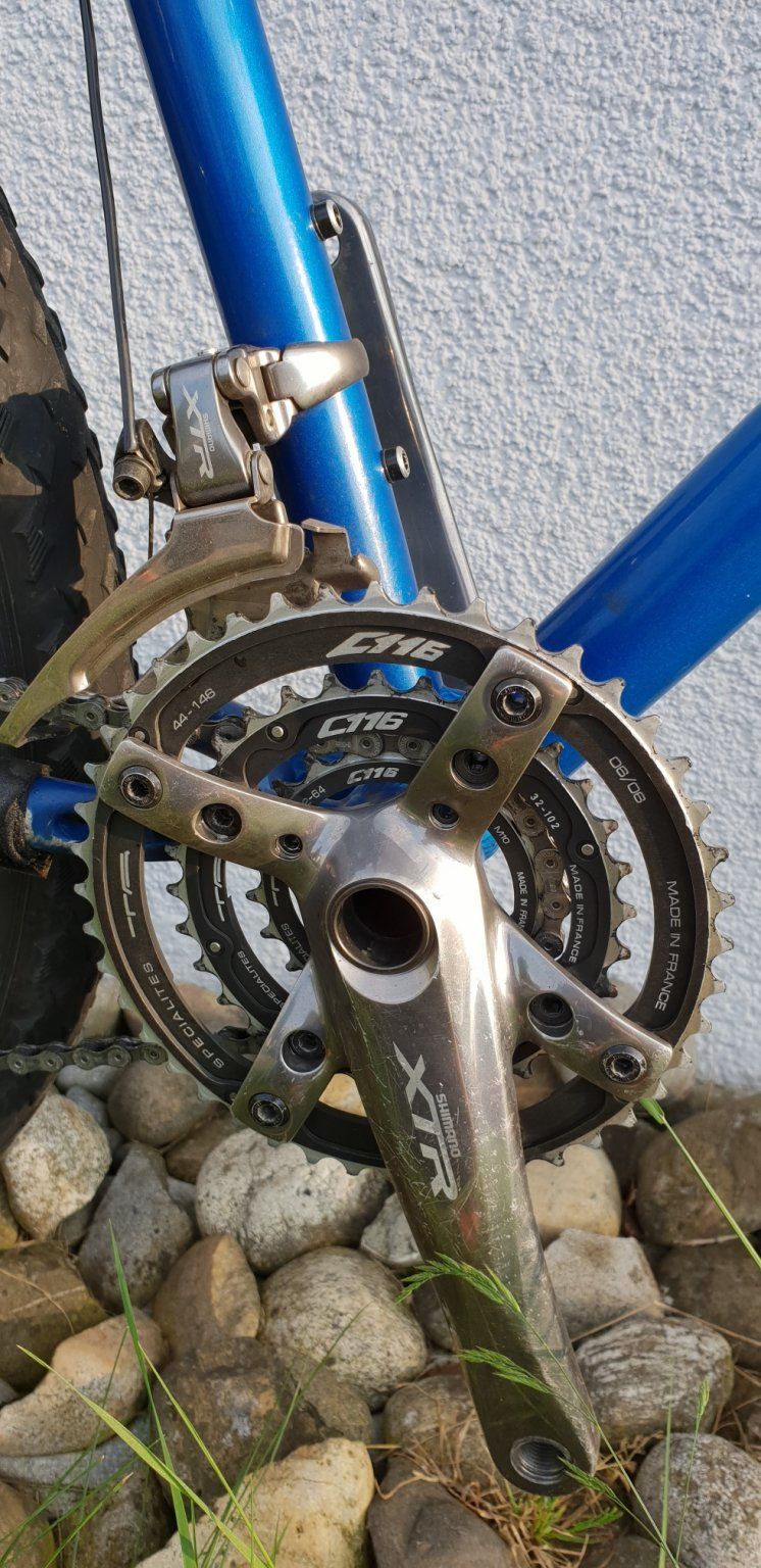 Das Foto ist von der falschen Seite, ich weiß... Zustand des Stahlrahmens ist bis auf ein paar Kratzer super. Die Ausstattung ist Orginal STX-RC - bis auf Sattel und Pedale. Federung funktioniert einwandfrei. Insbesondere die hintere Federung (Shock-Works) ist recht selten zu sehen - schon damals.