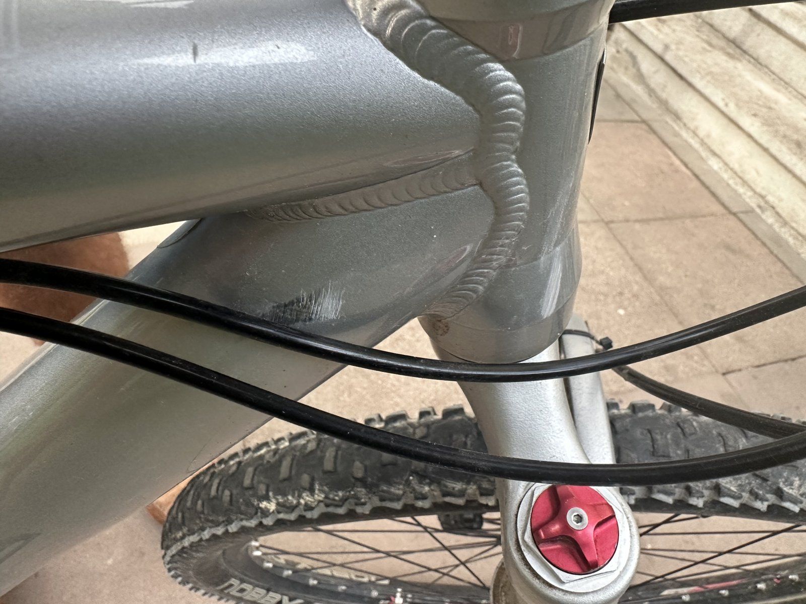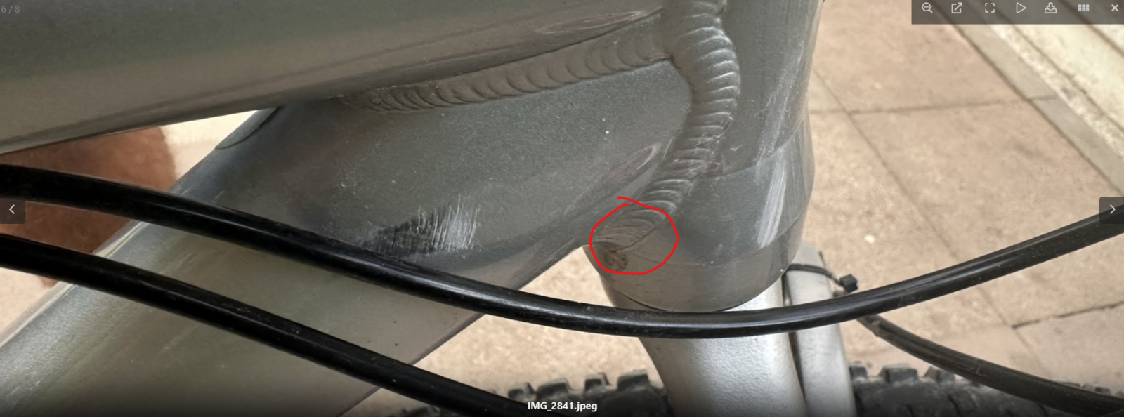 Ist auch ein schicker Rahmen, dessen Wert aber stark vom Zustand der Lager abhängt. Die Beschichtung der Kolbenstange vom Dämpfer scheint einseitig durchgerieben zu sein. Das kann man eventuell so fahren, wird aber auf Dauer zu Ölverlust und mieser Performance führen. Da müsste man auch nachsehen ob das an einer schiefen oder beschädigten Dämpferaufhängung liegt, wodurch der Dämpfer schräg belastet wird.