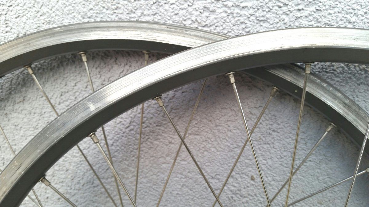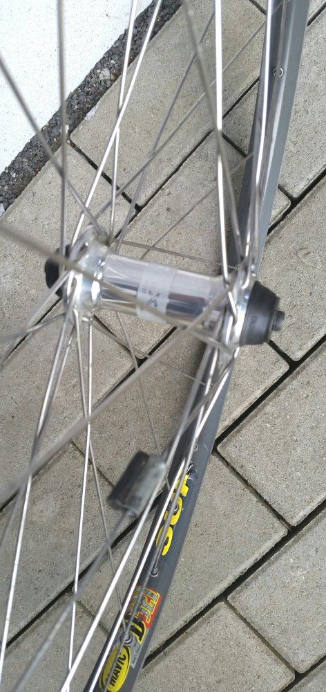 Felgen sind Mavic 521 USB in grau. Normaler Zustand, die Aufkleber lösen sich leicht.