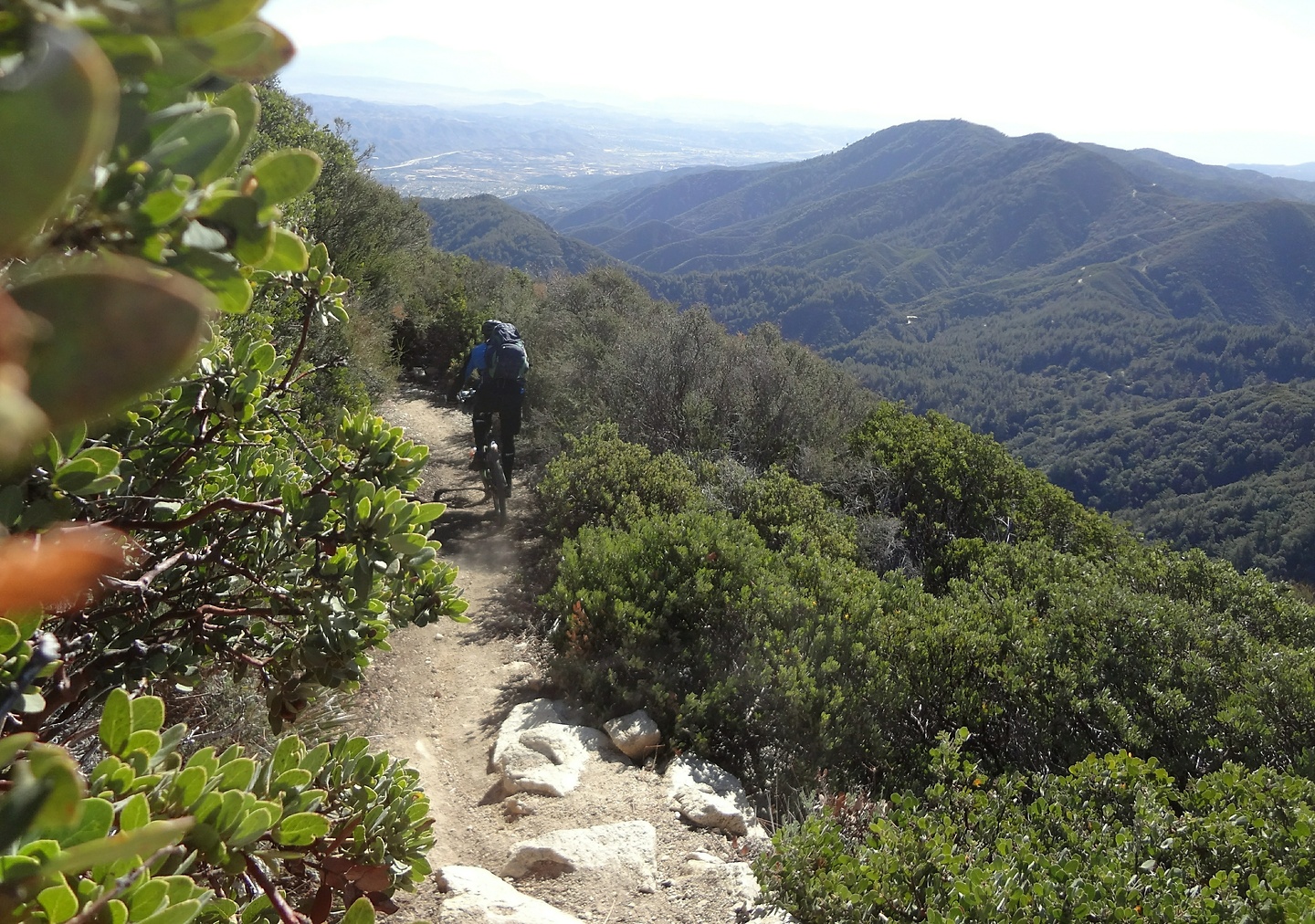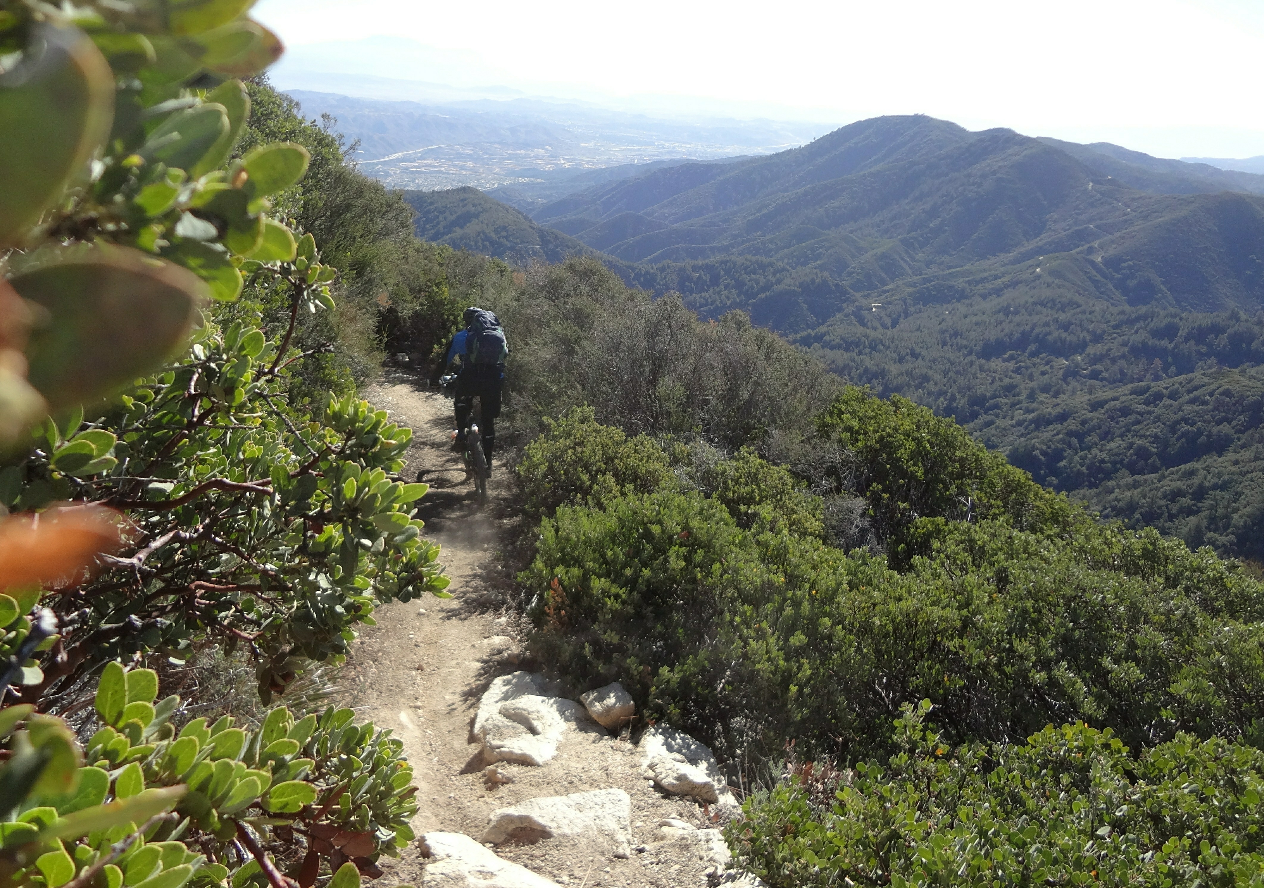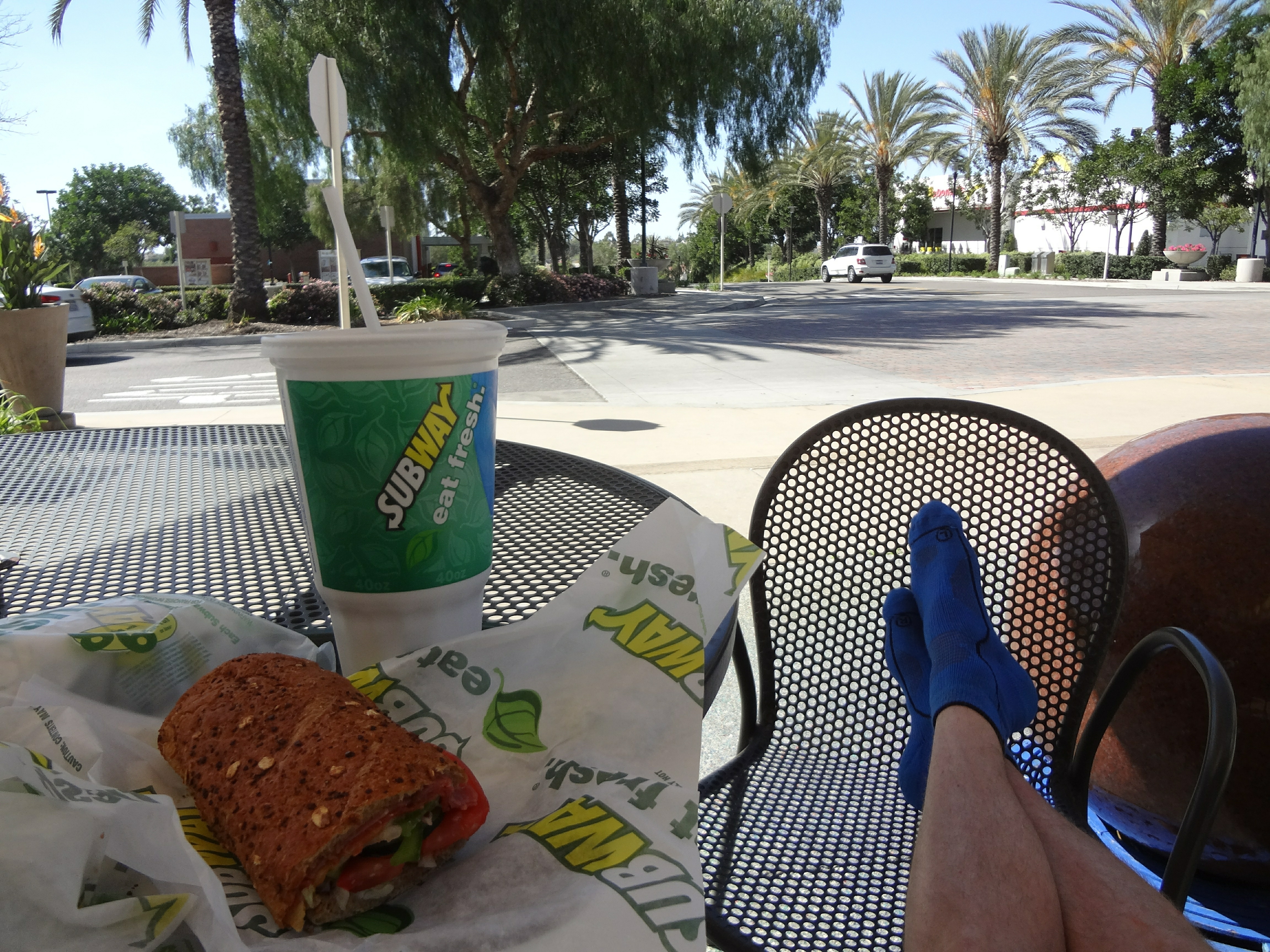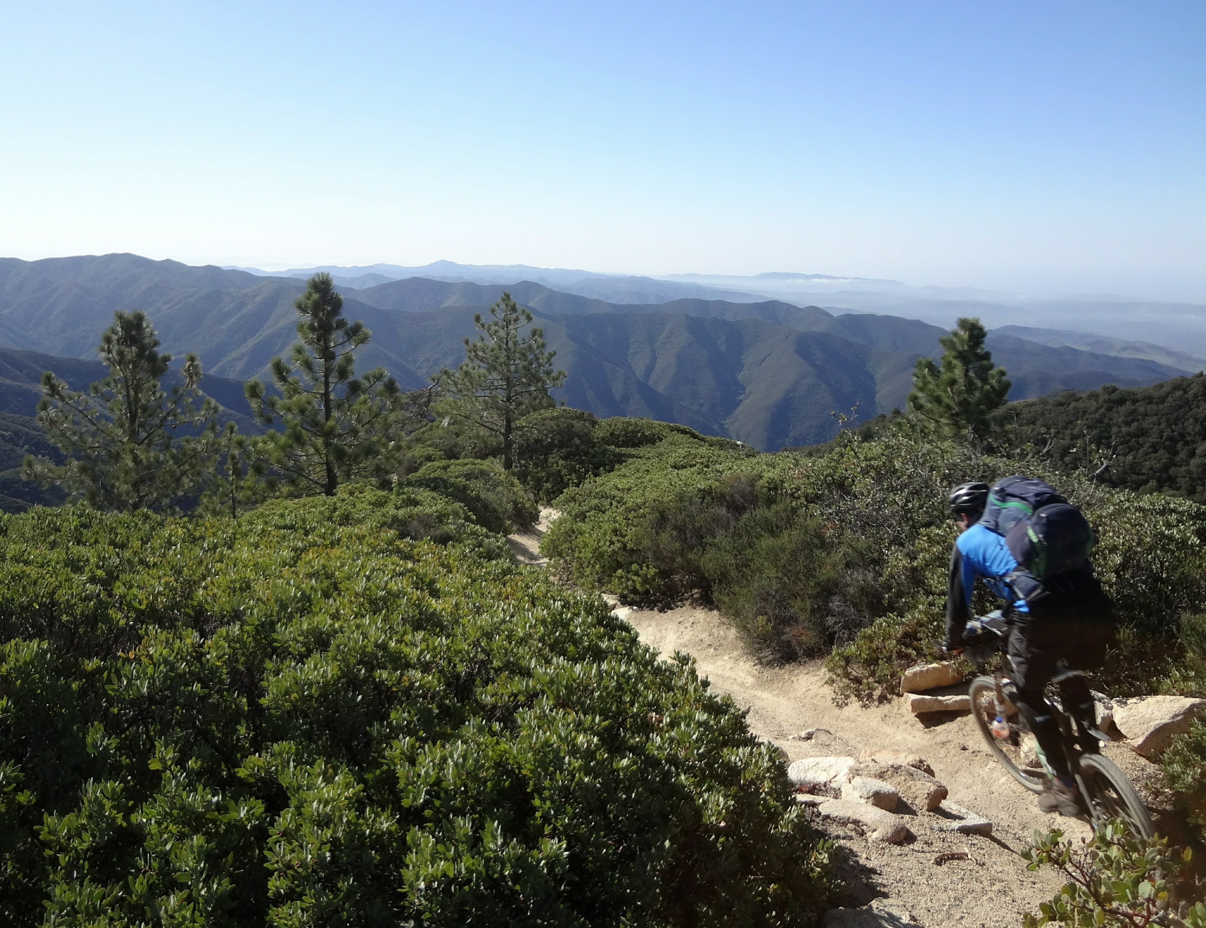 ... in den Ort Ladera Ranch. Hatte hier eine Möglichkeit auf ein Treffen mit einem Windows-Computer um meine Onlineprobleme in den Griff zu bekommen, ansonsten wär ich lieber in den Bergen geblieben. Leider wird aus dem Treffen nix, dafür gibts mehr zu essen, ausserdem WiFi und eine neue E-Mail mit einem weiteren Hilfsangebot. Hatte in einem kalifornischen Bikerforum gefragt. Blöderweise ist die neue Location jetzt auf der anderen Seite der Berge. Ich fahr zum Highway 74 und halt mal den Daumen raus. Keine zwei Minuten später sitzen Specki und ich in einem Pickup und cruisen gemütlich die tausend Höhenmeter auf einer Passstrasse zurück auf die Main Divide. Bin verdammt froh, hier nicht radeln zu müssen. Die Strasse ist zwar leidlich hübsch, aber der Verkehr unchristlich.