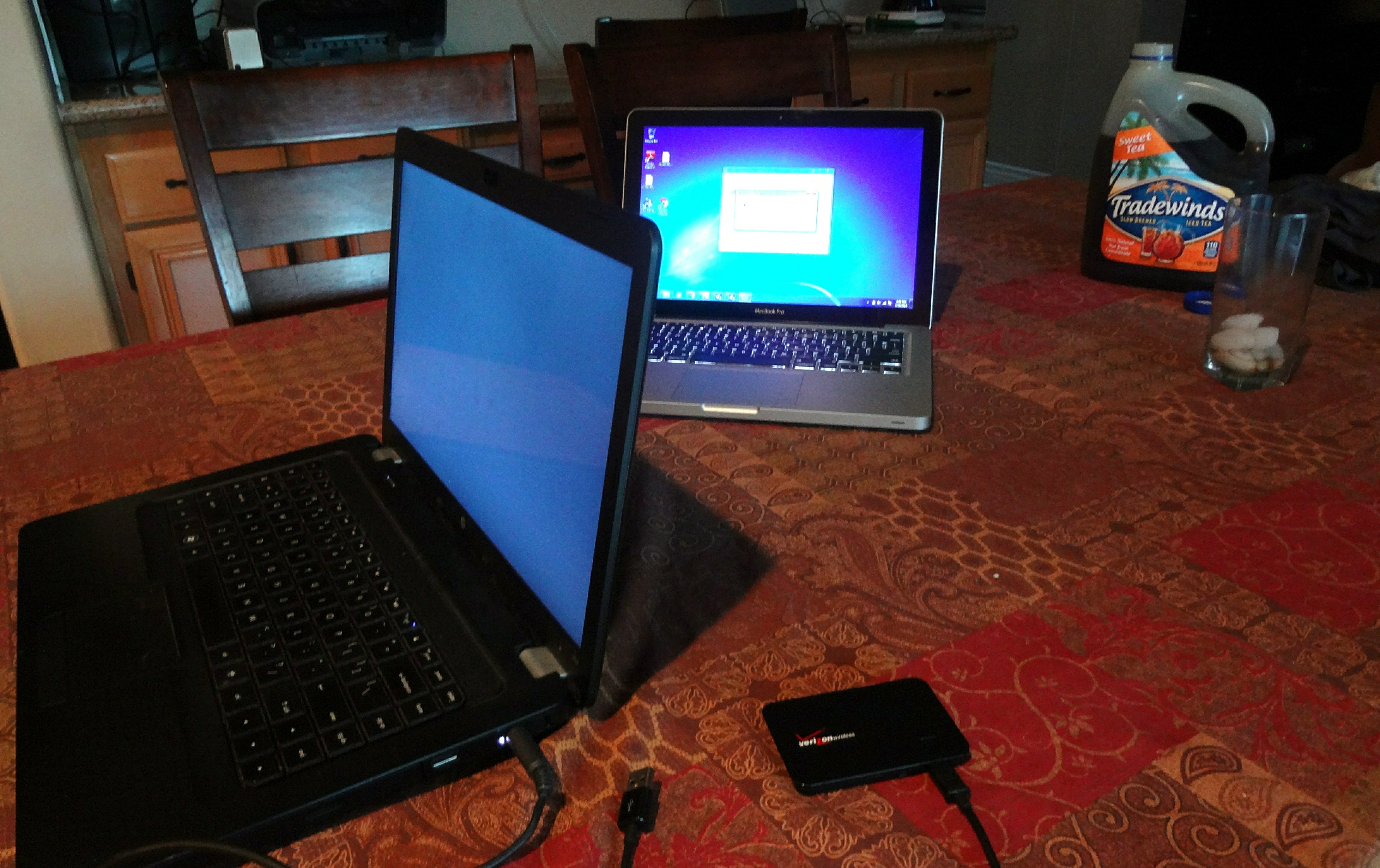 Und so sitze ich am abend noch im Haus von J.D. in Murrieta bei Temecula und wir rücken meinem kleinen Problem mit massivem Hardwareeinsatz zu Leibe. Kaum ein halbes Stünderl vergeht, Verizon-Software installiert, Firmwareupdate, Einstellungen korrigiert, schon flutscht die Sache erste Sahne. Aber das die Kerls das in ihren eigenen Läden nicht hinbekommen... das ist schon ein Armutszeugnis.