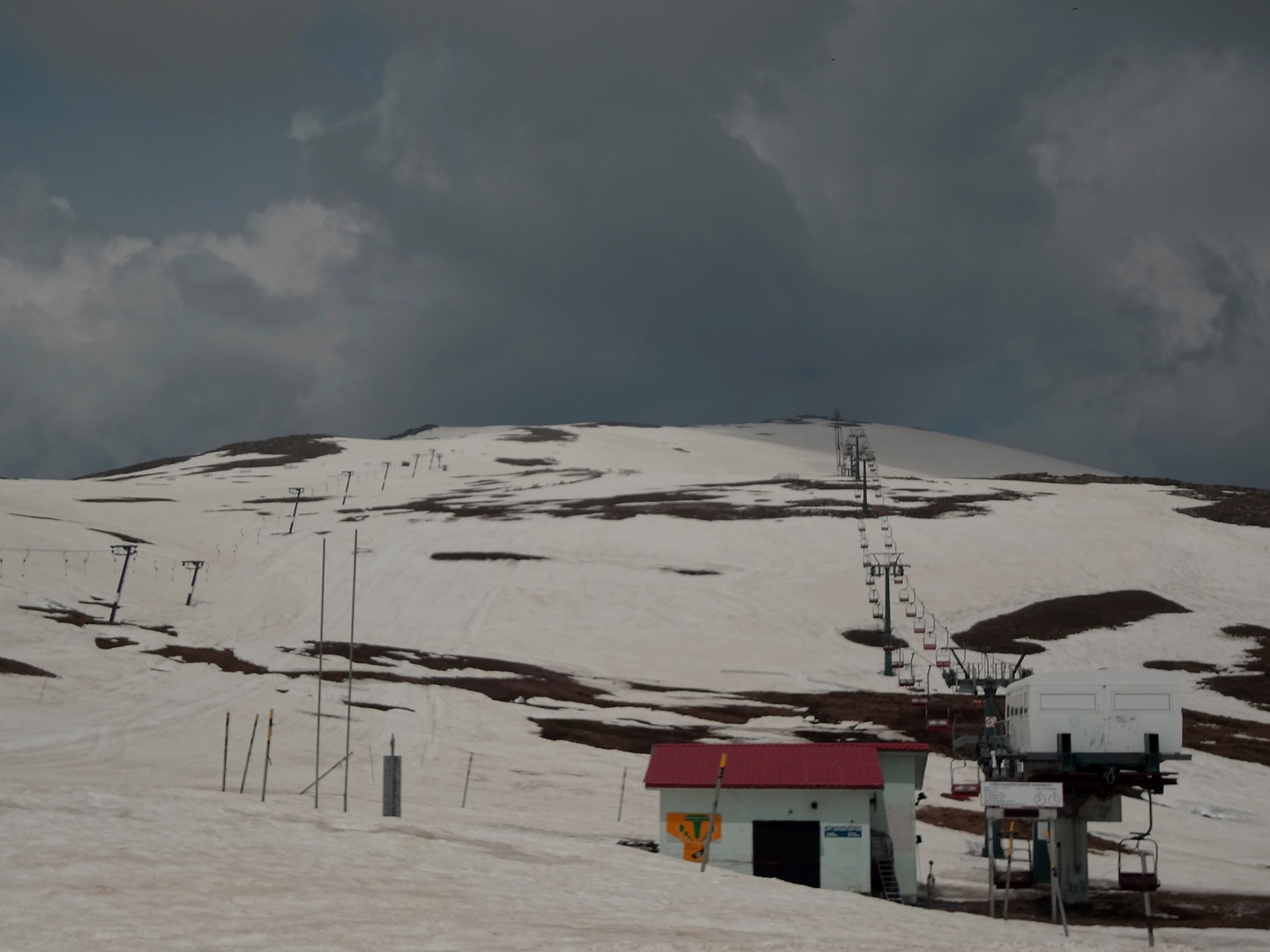 Abgesehen vom Wetter: Wozu eigentlich der ganze Gipfelkram? Es ist ja nicht so, dass mich drüben ein toller Singletrail nach Mazedonien erwarten würde. Nordseitig führt eine Forstpiste bis auf den Gipfel, schätze mal aufgrund der Exposition wird das zur Zeit wenigstens ein achthundert Höhenmeter langer Bergabspaziergang sein.