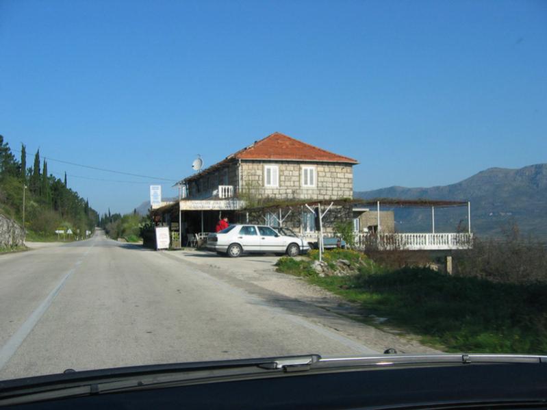 die Grenzstation von CrnaGora und ein einsames Restaurant/Gostilna im Konavle-Tal (N 42,53838° O 18,31620°).