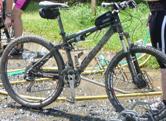 Dreckiges Rad mit sauberem Dämpfer