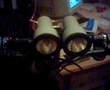also noch ne kleine Erklärung: von der Conradlampe schmeiß ich alles weg, nur das Gummiband mit der Kunststoffplatte verwende ich, die Platte schleif ich vorne plan und bohr 2 Löcher (Abstand wie Sigma-Halter). Da schraub ich mit M3 den Deckel von meinem Alu-Gehäuse an. Die Muttern der Schrauben verschwinden in der Polsterung der Kunstoffplatte, so dass sie an der Stirn nicht stören.