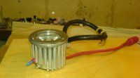 mein ziel war es eigentlich 1x luxeon (abblend) und 1x 20 oder 35W halogen als fernlicht; aber leider funktionieren die halogen leuchten nur bei wechselstrom und die box ist so groß weil da noch 2 poties für die halogendinger rein sollten
