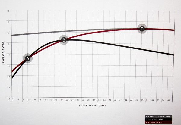 Das ist zwar richtig, aber man kann es nicht vernünftig messen, weil man kein Meßgerät ansetzen kann und auch die Wege zu klein sind. Außerdem zählt nicht nur die Durchschnittsübersetzung (Gesamtweg Hebel zu Gesamtweg Geberkolben - oder ein Teil davon), sondern auch delta-Hebelweg zu delta-Geberkolbenweg. Das ist die sogenannte "differentielle" Übersetzung. Und bei gewollt nichtlinearer Mechanik verändert die sich über den Weg und bestimmt vor allem die Modulation beim bereits gezogenem Bremshebel. Das ist genauso bei Hinterbauten mit nichtlinearer Mechanik. Dazu kommt noch die immer nichtlineare Luftfeder im Dämpfer.
