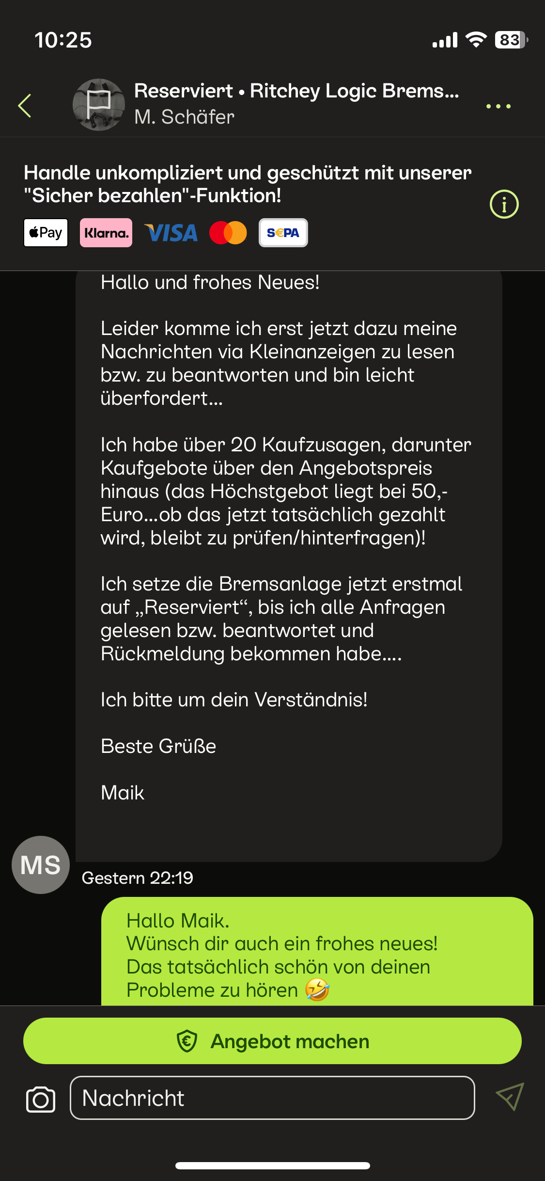 Aber für noch höhere Gebote ist mir der Zustand zu schlecht… 🤷🏿‍♂️