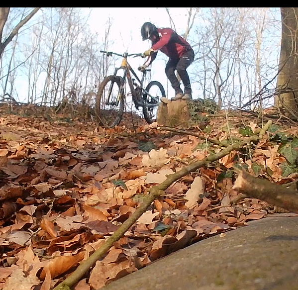 Bei einem Trail bei uns gibt's einen Einstiegsdrop über einen Baumstumpf. Der ist etwa Kniehoch und hat schräge Landung.