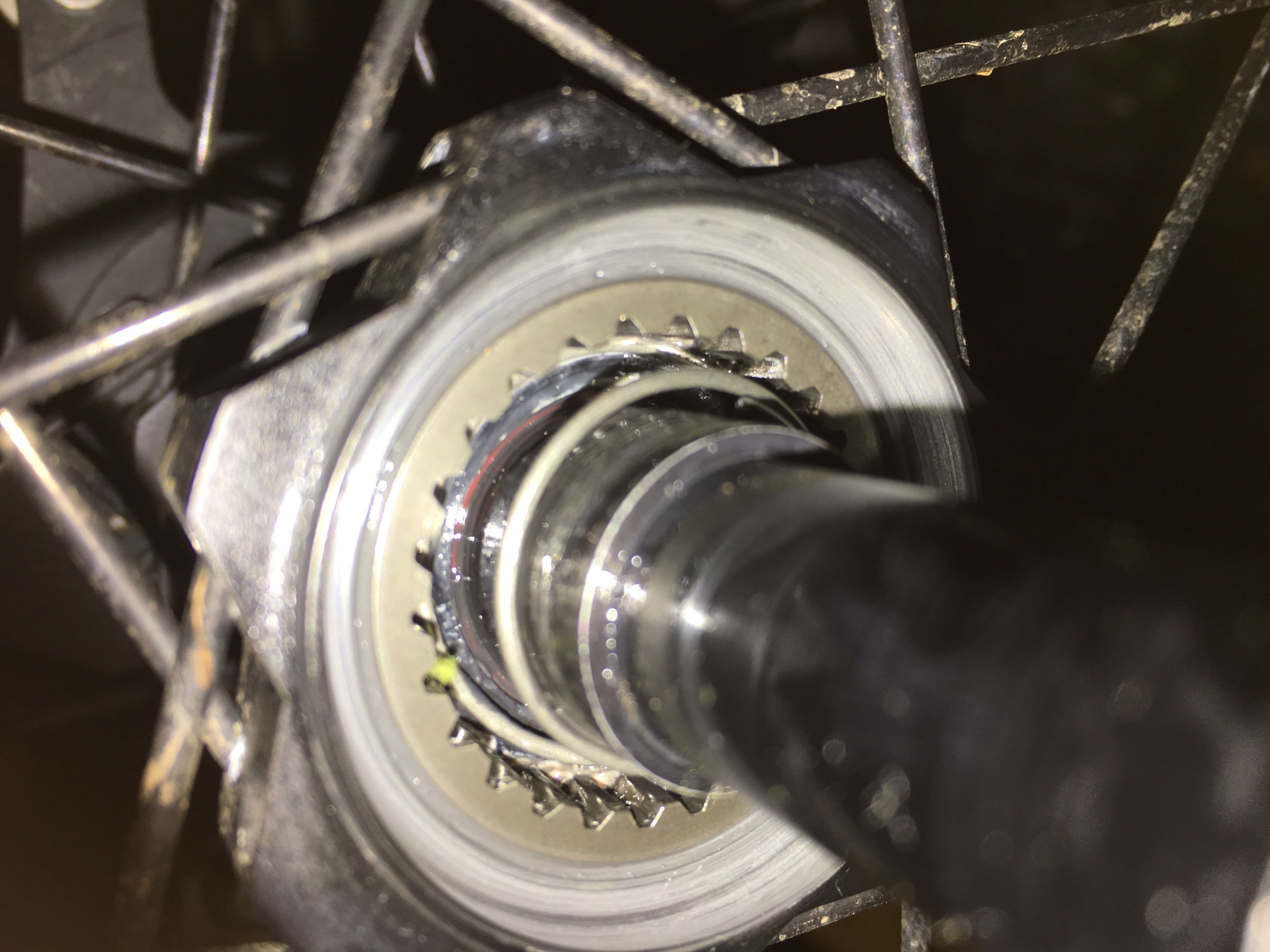 Mir gefällt die fast nicht vorhandene Luft vom Pawl Freilauf ohne Dichtring in der Ratchet Nabe nicht.