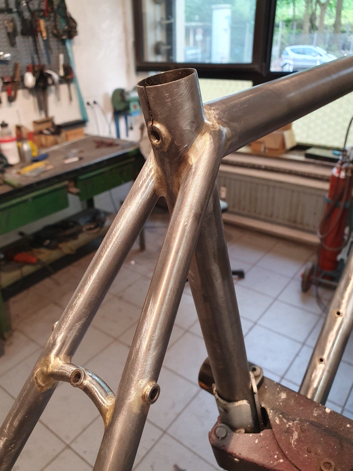 .Das sind Röhrchen die ins Unterrohr führen @kindi1972. Konnten wir so realisieren weil wir dann doch aufs konische Steuerrohr gegangen sind, da ist noch gut Platz für den Gabelschaft.Schaut gut aus und Gewicht finde ich auch gut - aber mit Lack bist Du auf alle Fälle über 2 kg.