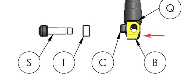 B (gelb) kannst du in kleinen Rastern nach Rechts/Links verschieben, damit das Loch unten beim Reinschieben mittig ist (für die Schraube S)... würde mich auch interessiern, aber ich kann Euch gerade nicht folgen. Wenn ich den Postpin rausschraube, sehe ich doch nur das ovale Loch des Ausgleichsclips. Von welchem Raster vor oder zurück redet ihr?