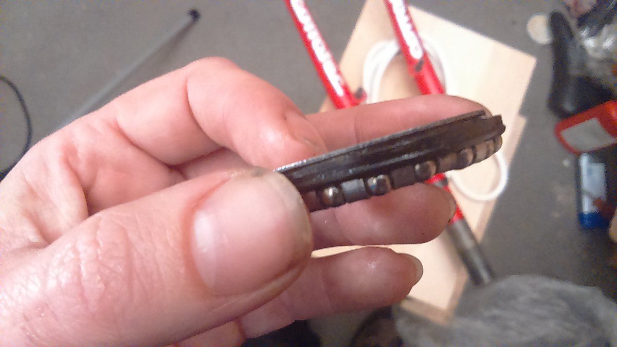 Ich hatte die Dinger eigentlich schon abgehakt; hier gibt es keine Berge, da kann so ein Rad auch schon mal was schwerer sein. Aber dann lief das Tretlager doch nicht ganz sauber; da hab ich diese Eisenschweine mal eben abgebaut und gewogen. Eigentlich reichte es sie in der Hand zu halten...