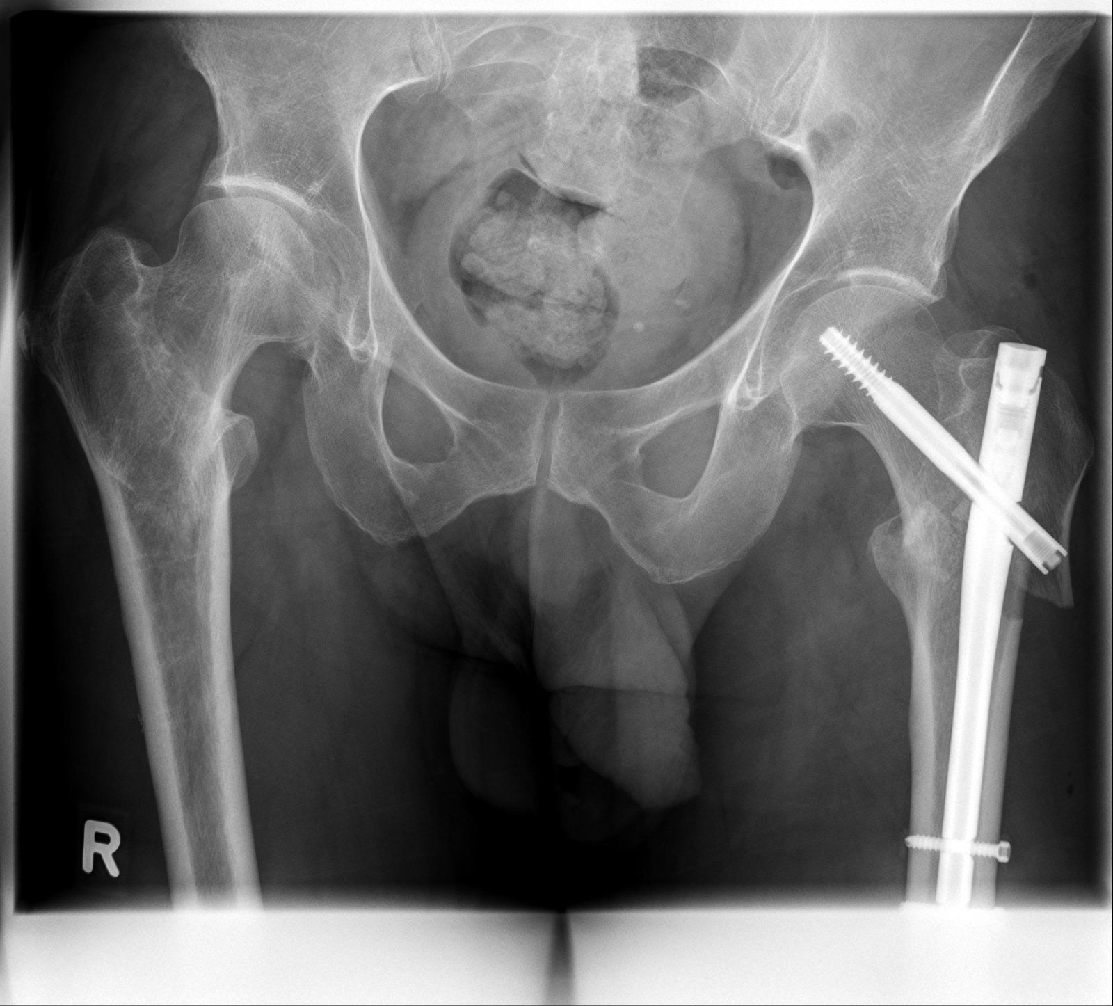 Zumindest mal der halbe Oberschenkel. Der Nagel ist 20cm lang, die Schraube oben 13cm. Ist schon massiv. Wie sagte ich vorhin zu meinen besten Freund: Nach meinen Tod lohnt sich das ausschlachten!
