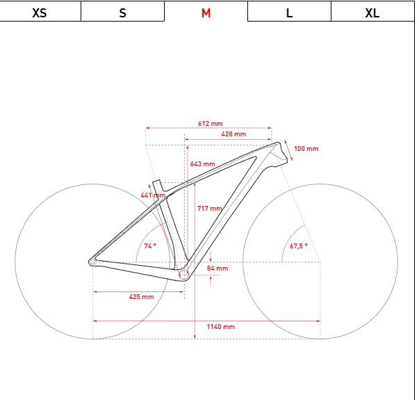 67.5° Lenkwinkel mit 45 Vorbau und 720 Lenker in M passt schon zusammen. Der Hauptrahmen ist wieder länger, da finde ich 425 besser als die super langen 450. Wer baut heute noch so lange Kettenstreben.