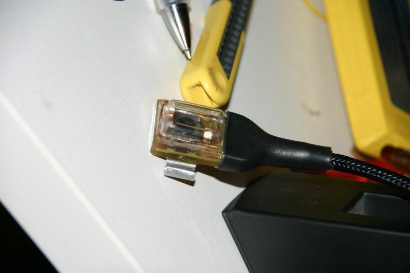 Ich selbst habe wie gesagt eine grobe Schalung aus sehr glattem Plastik (von einer Blisterverpackung die Rückwand) und Tesa angefertigt. Erst einen Schwupps Harz rein und aushärten lassen. Auf diese 1mm Schicht habe ich dann wieder einen Schwupps Harz und die Platine eingelegt. Sie war dann hauchdünn überzogen. Wieder härten lassen. Dann habe ich die Kappe drauf gesetzt und Harz eingegossen bis der Rand der Schutzkappe bedeckt war. Nach einem weiteren Tag aushärten habe ich dann ausgeschalt und mit einer Schlichtfeile das ganze noch ein wenig in Form gebracht. Vorn dann wieder einen Schrumpfschlauch mit Innenkleber drüber und den Kabelschnürsenkel damit gleich mit angeklebt.