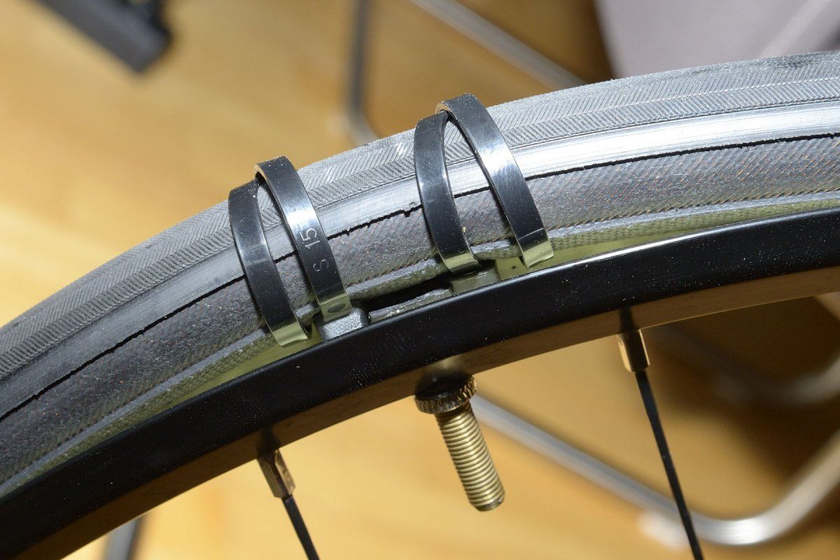 Ansonsten wie beim Conti, Starlockscheibe für das Ventil ohne Gewinde drauf und im Bereich des Tubeless Ventil zwei Kabelbinder relativ locker um den Schlauchreifen mit Verschluss nach unten. Fertig.