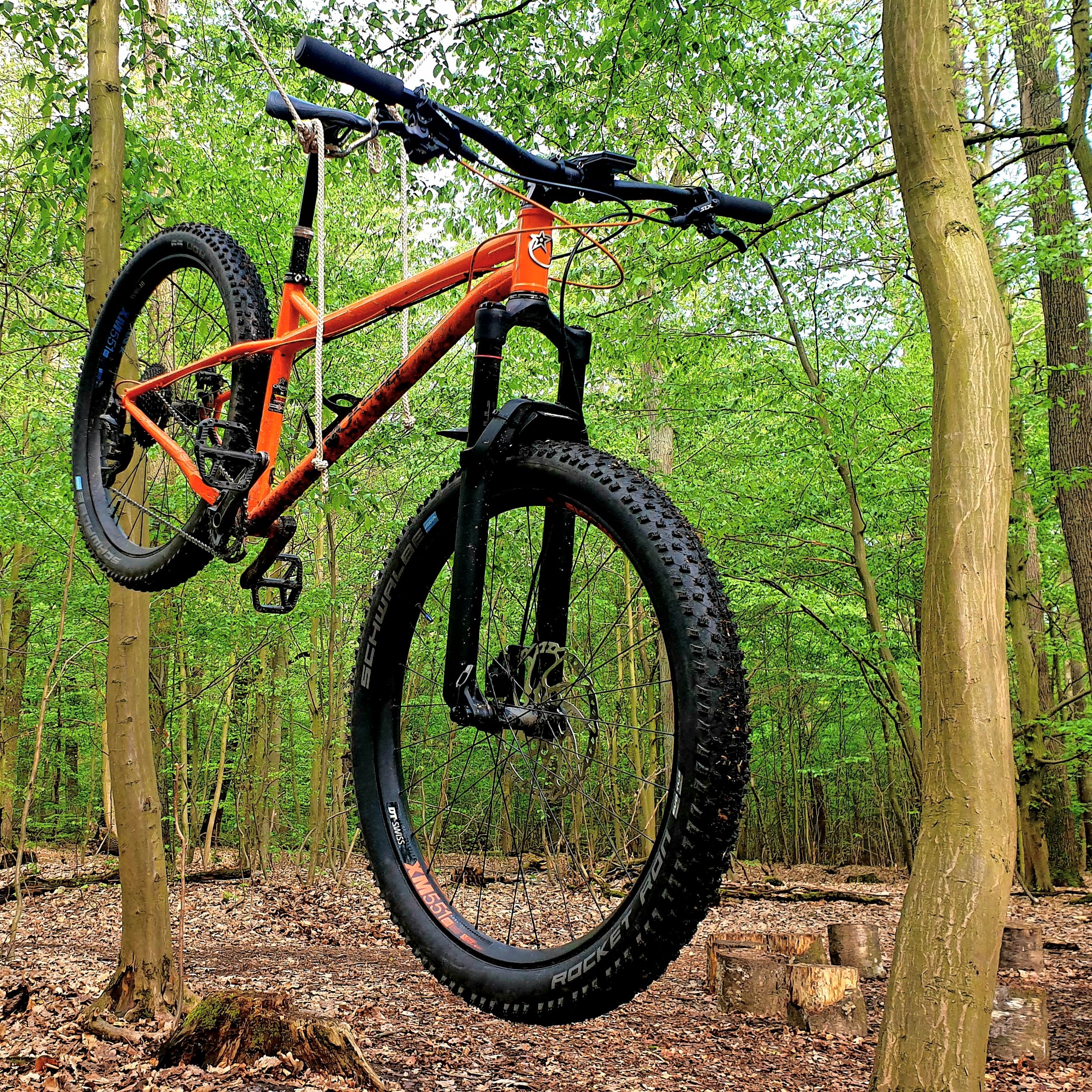 Fahren Hardtail nur im Flachem - leicht hügeligem Gelände, Rocket Ron super solange Trail trocken - feucht aber nicht flüssig.