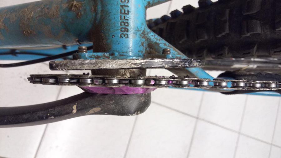 (ja der ist tatsächlich krumm, mehr konnte/wollte ich nicht zurückbiegen als er mal auf schleifkontakt am kettenblatt hing, dem dabei übrigens nichts passiert ist)
