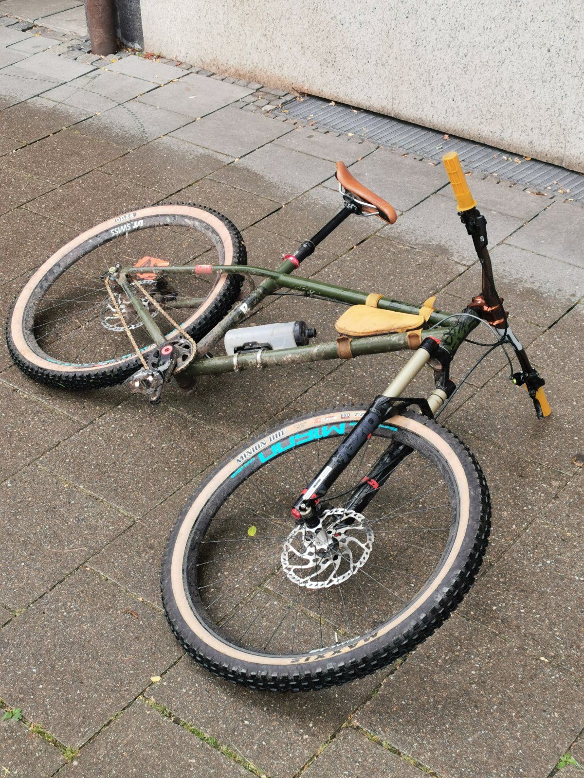 Ich habe keine 500m in den Wald. Aber gut das ~15kg HT bewege ich da auch nicht. Dafür habe ich das DayOne und das Inbred. Fragt mich bitte nicht wie viel die Räder wiegen. Sie fahren, wenn ich in die Pedale trete