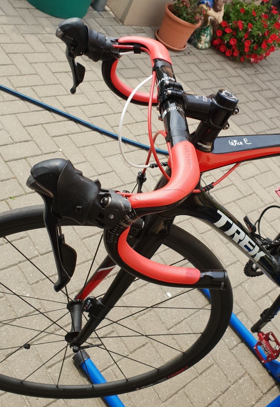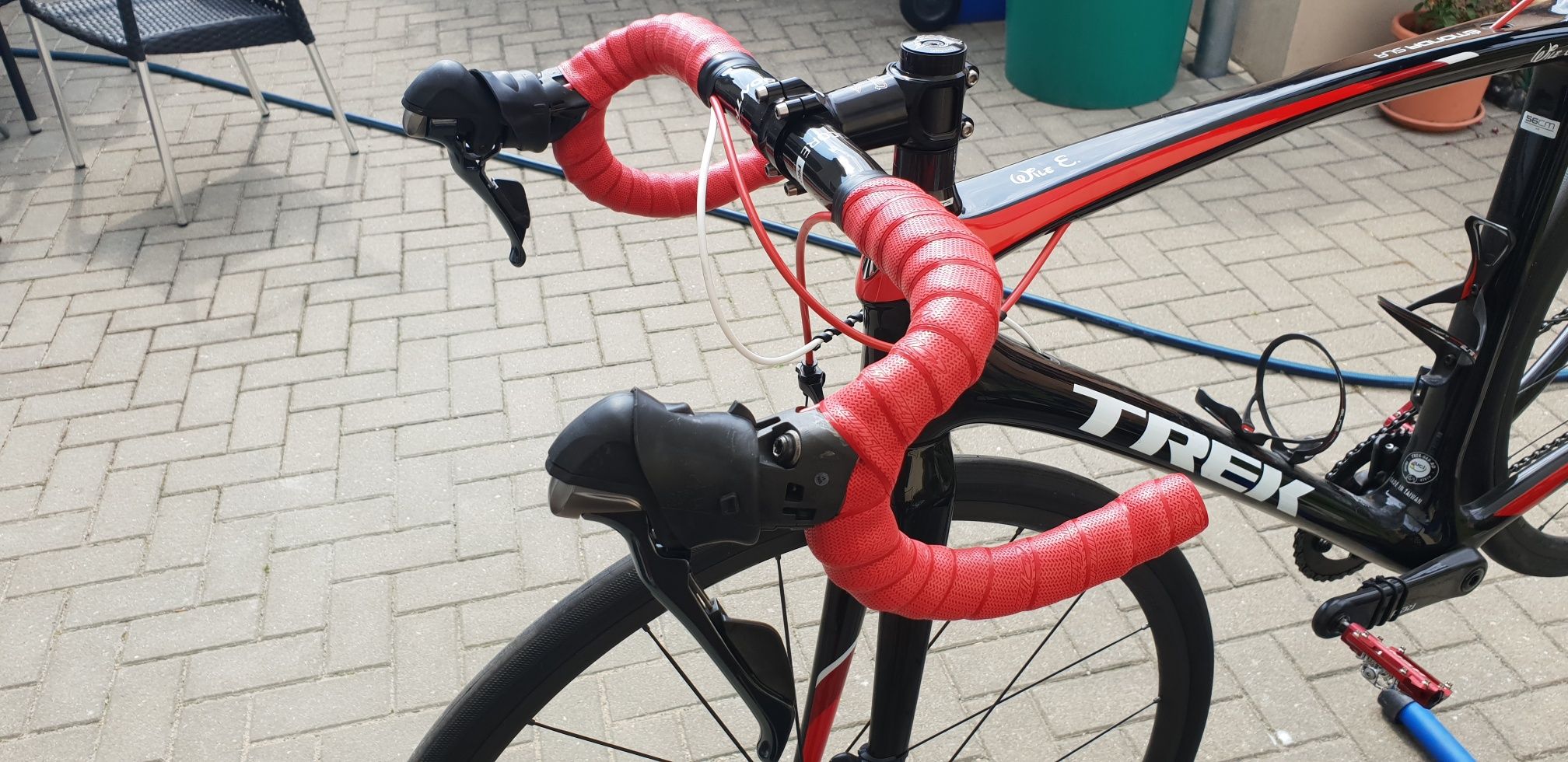 Ausgepackt und angebaut wurde vorgestern. Der Lenker hat zeitgemäß ordentliche Kabelführungskanäle. Dazu ist er leicht „verformt“ damit er nach dem Aufkleben der EPS-Polster einen runden Lenker ergibt. Leider misst Trek nicht wie Schmolke außen, sondern in der Mitte der Rohre, sodass der bestellte Lenker 2 cm breiter war als bei mir üblich. (Ist aber nicht so tragisch und hat sich beim Fahren dann sogar etwas sicherer und richtig gut angefühlt.)