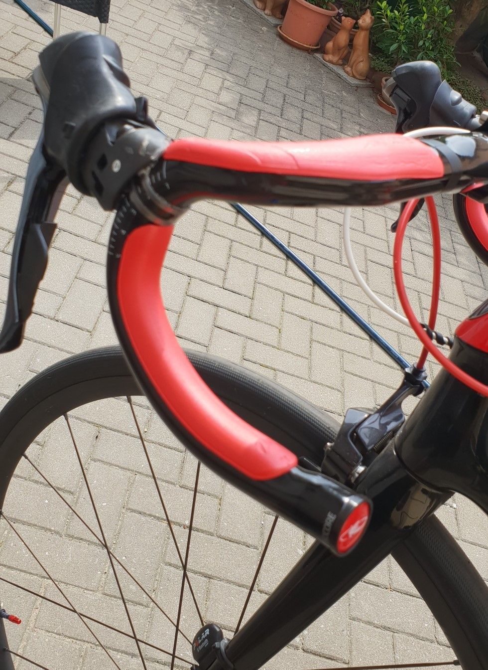 Die EPS-Patches super gepasst und nach dem Wickeln des Bandes hatte man einen runden Lenker. Sah gut aus.