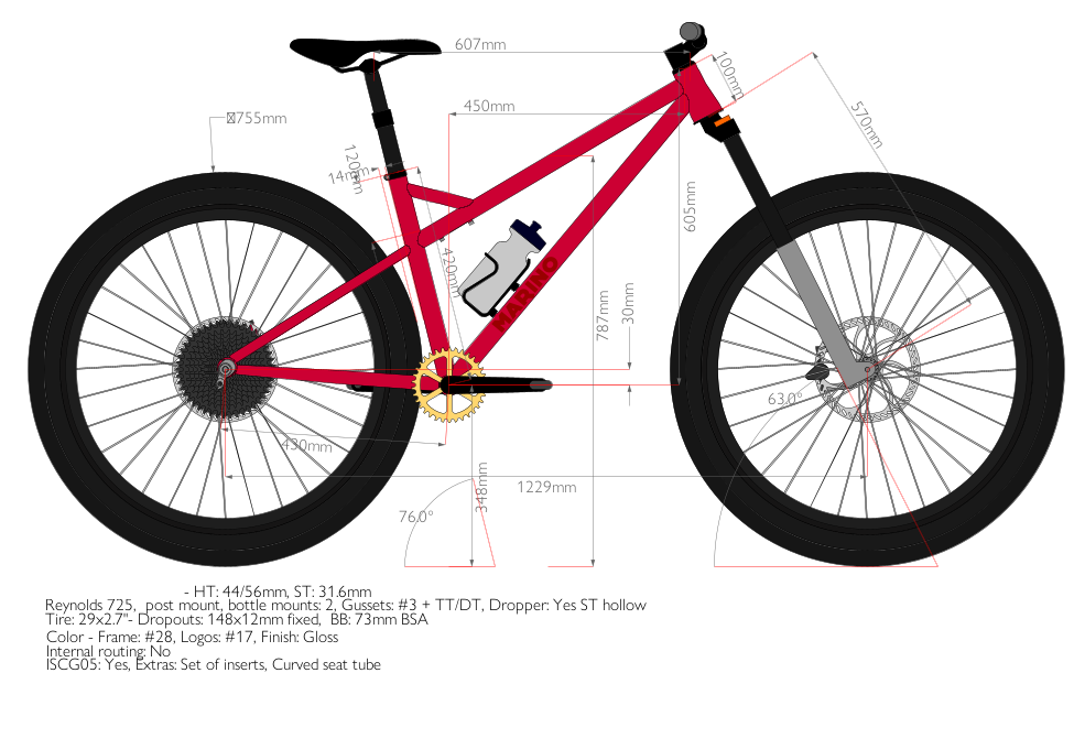 Nur eine Frage, sehe ich es korrekt du wirst mit 29 fahren? Wenn ja, dann würde ich den BB Drop erhöhen. Wenn ich die Zeichnung korrekt verstehe sind es -30mm. Das wäre für ein 29 Trail-HT sehr wenig. Würde da eher auf -60-65 gehen. Ich vermute die 30 stammen vom Fully was aber in den SAG geht.