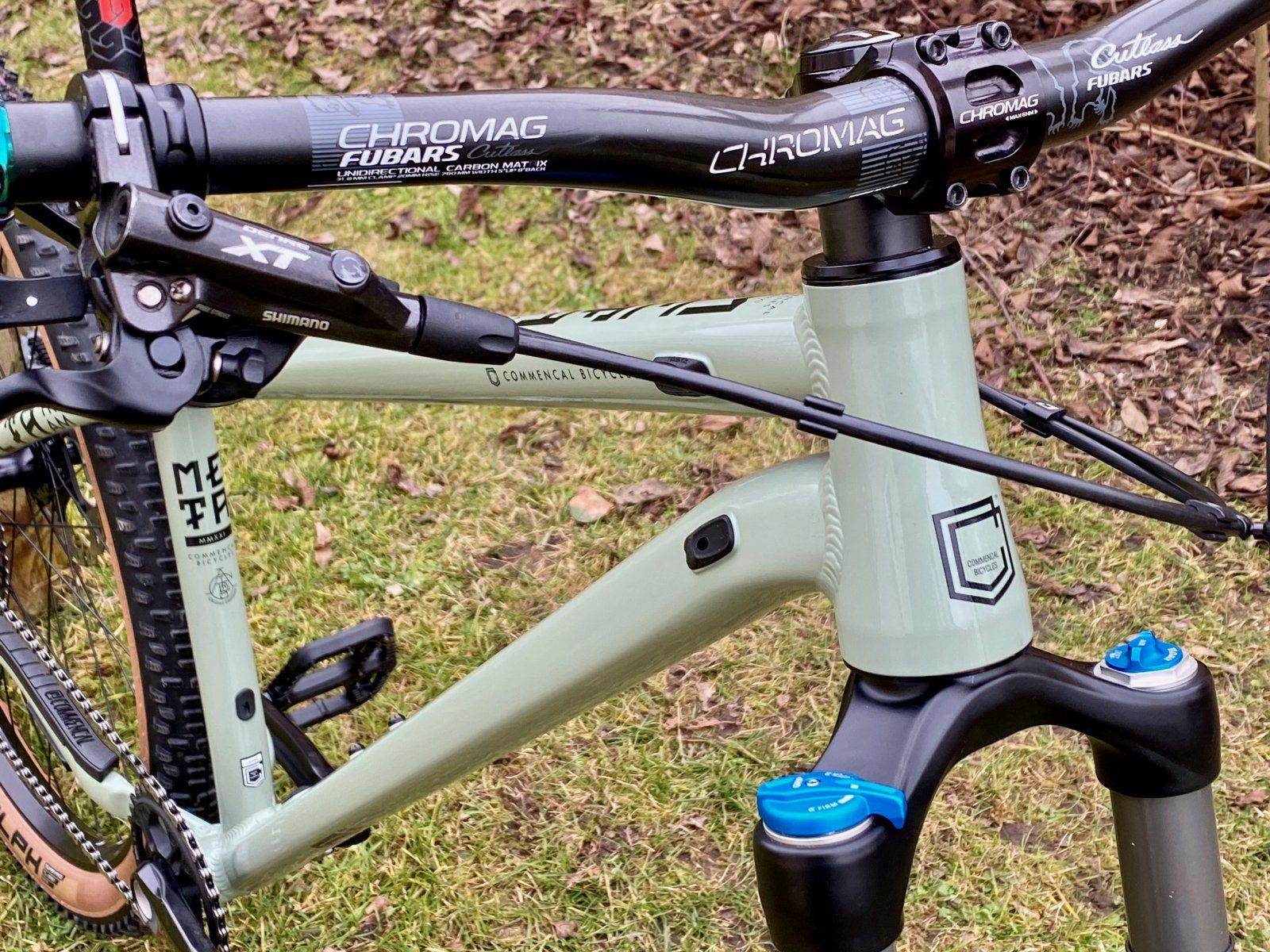 ! Hinten ein Dämpfer mit weniger Hub, damit komme ich auf ca. 183 mm Federweg. Vorn eine Yari mit 180 mm und einer MST Kartusche und von Reverse ein Angleset so dass ich so ungefähr die gleiche Geo habe wie das "original" Furious