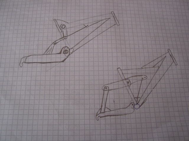 allerdings fällt mir bei näherem hinsehen auf, dass der hebel evtl am sitzrohr anstößt bzw wenn er nicht querverstrebt ist hast zu wenig steifigkeit hinten. und im gleichen zug würde ich auch den anlenkungswinkel des dämpfers (dreieck: wippenlager/dämpferaufnahme rahmen sowie wippe) sehr spitz machen!
