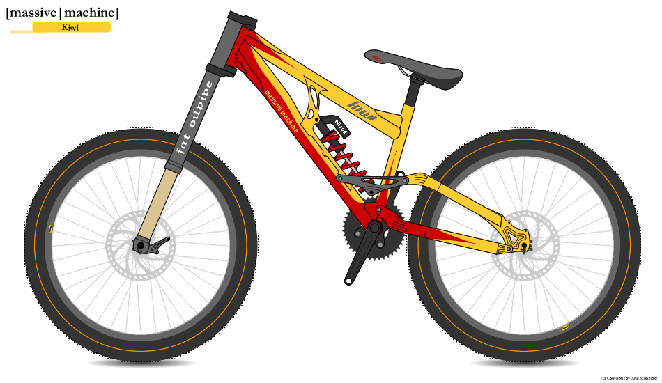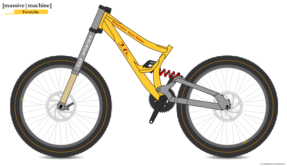 4gelenker (funzt aber glaube nicht wirklich, sollte aber so aussehen ;) ) mit 260er dämpfer, doppeltem unterrohr gusset mit zum steuerrohr hin hochovalisiertem unterrohrprofil (am tretlager rund!)