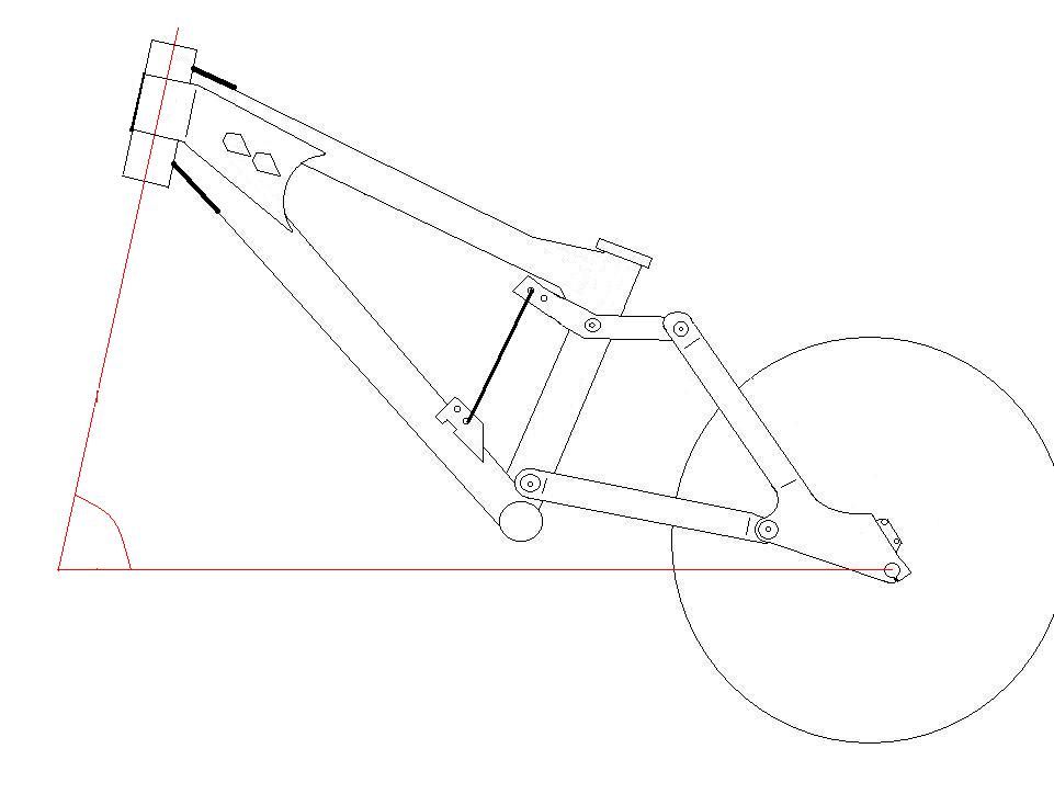 Da das HR höher als das VR ist, werden die Winkel noch flacher und das Tretlager höher.