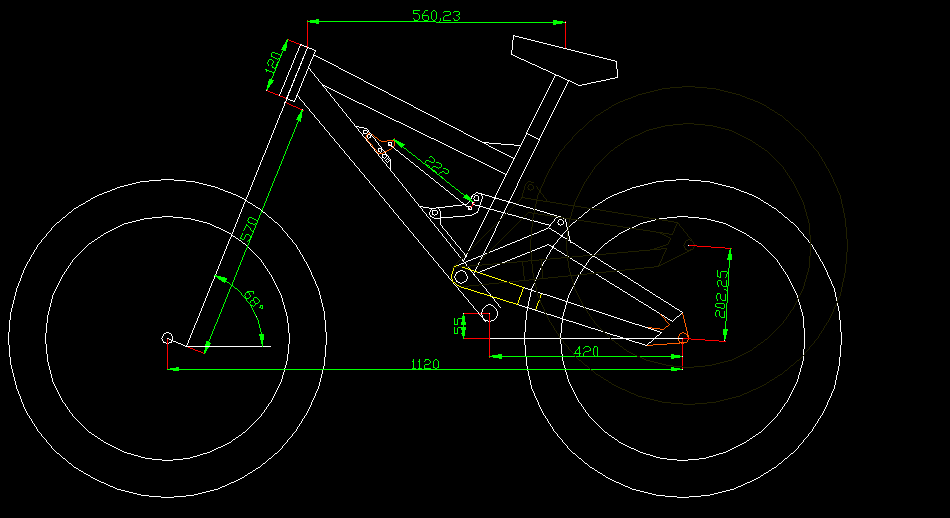 also dein rahmen sieht ganz gut aus, schön schlicht und klein :) aba diese verlängerung der sitzstrebe gefällt mir net.ausserdem wär eine durchgehende achse (bei der verbindung sitzstrebe-umlenkhebel) besser ;)