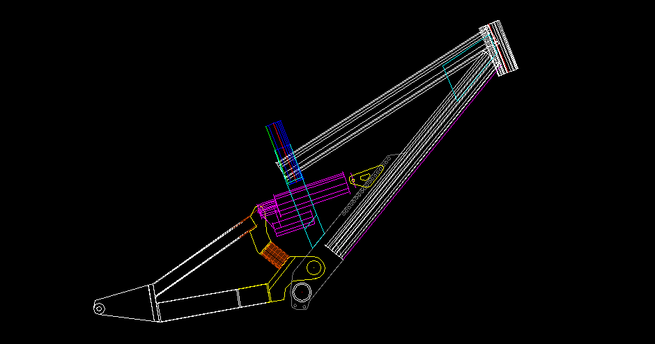 Der Hauptrahmen soll ein Gitterrohr Rahmen werden z.B wie Der RB Dragster nur Komplett. Also hab ich da keine "ganzen" Rohre. Der Dämpfer soll dann zwischen die Alurohre, welche das Unterrohr darstellen, geschraubt werden. Der Rahmen wird dann komplett mit Kohlefasern umwickelt, jedoch der Teil der über dem Dämpfer sitzt wird dannach wieder ausgesägt, oder direkt weggelassen. Also ist der Dämpfer frei zugänglich, OK wird die Montage une die Einstellung vielleicht etwas fummelig, aber ich will ihn nicht für immer im Rahmen einschließen. Dannach soll eine Plexiglasscheibe auf diese Öffnung geschraubt werden, kann also auch wieder abgenommen werden. Natürlich müsen auch löcher für die Hebellage dort reingeschnitten sein.