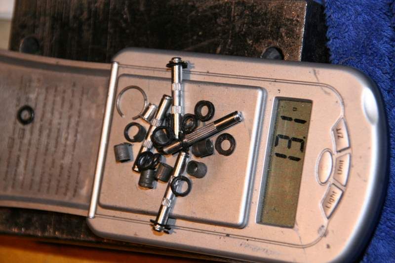 das gewicht kann ich aber irgendwie kaum glauben... die schweren röllchen, der alukäfig... naja. was für ein material sind die bolzen?