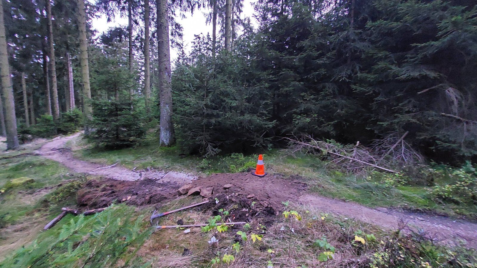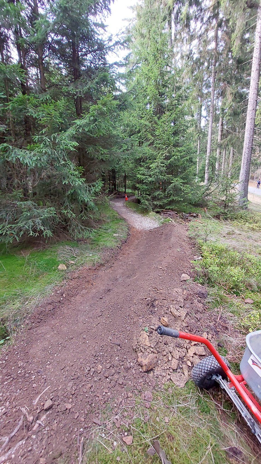 Ich würde mal vermuten die Linie fährst du an der Stelle nicht. Ich gehe mal davon aus du fährst über den Sepp Step, der ist gerade 1,5m weiter oben, insofern dürfte das für die meisten verschmerzbar sein und alle anderen sind froh das sie den Bereich ohne Probleme auch im Herbst noch befahren können.Und schon wieder ein paar Wurzeln weniger …