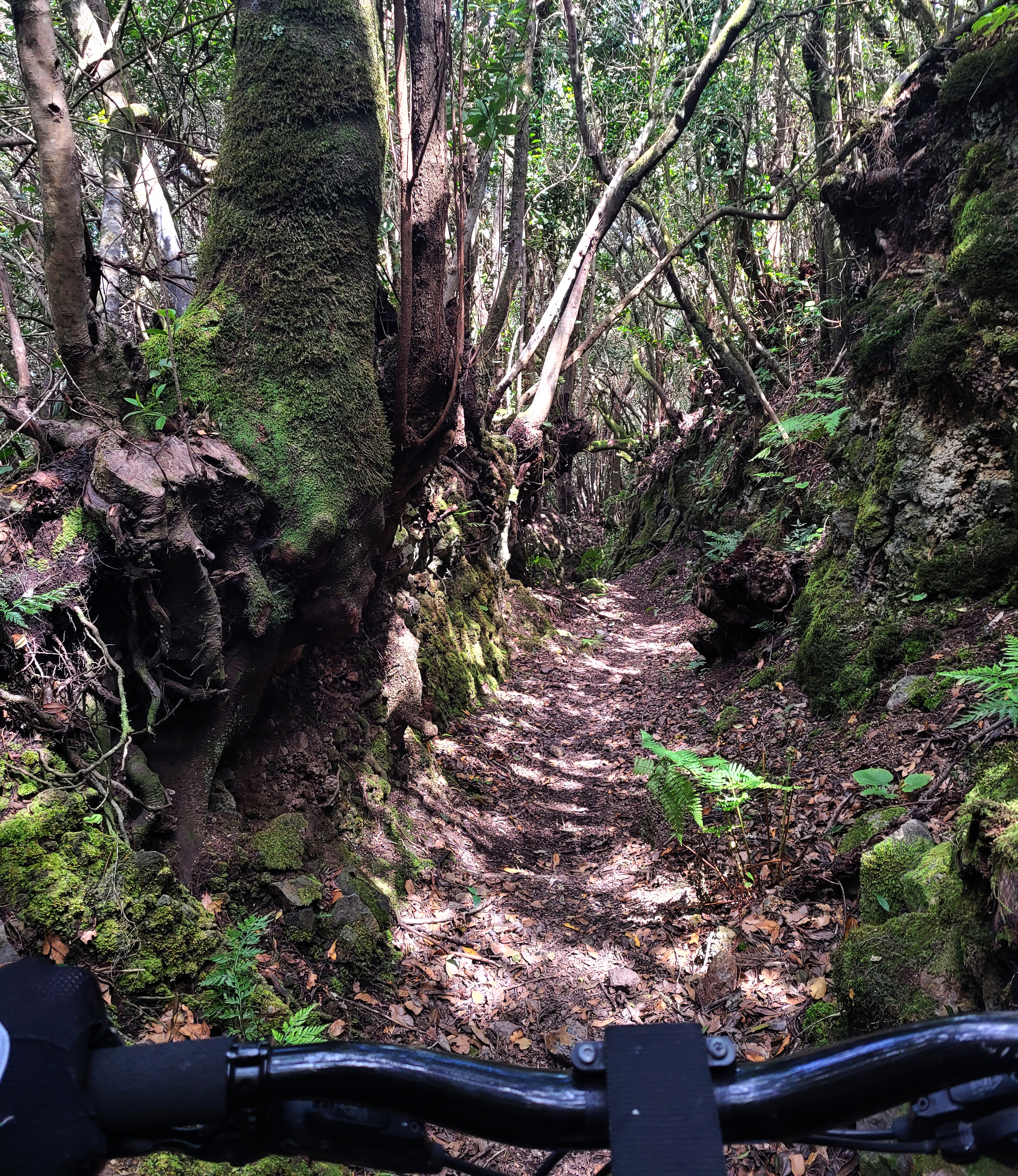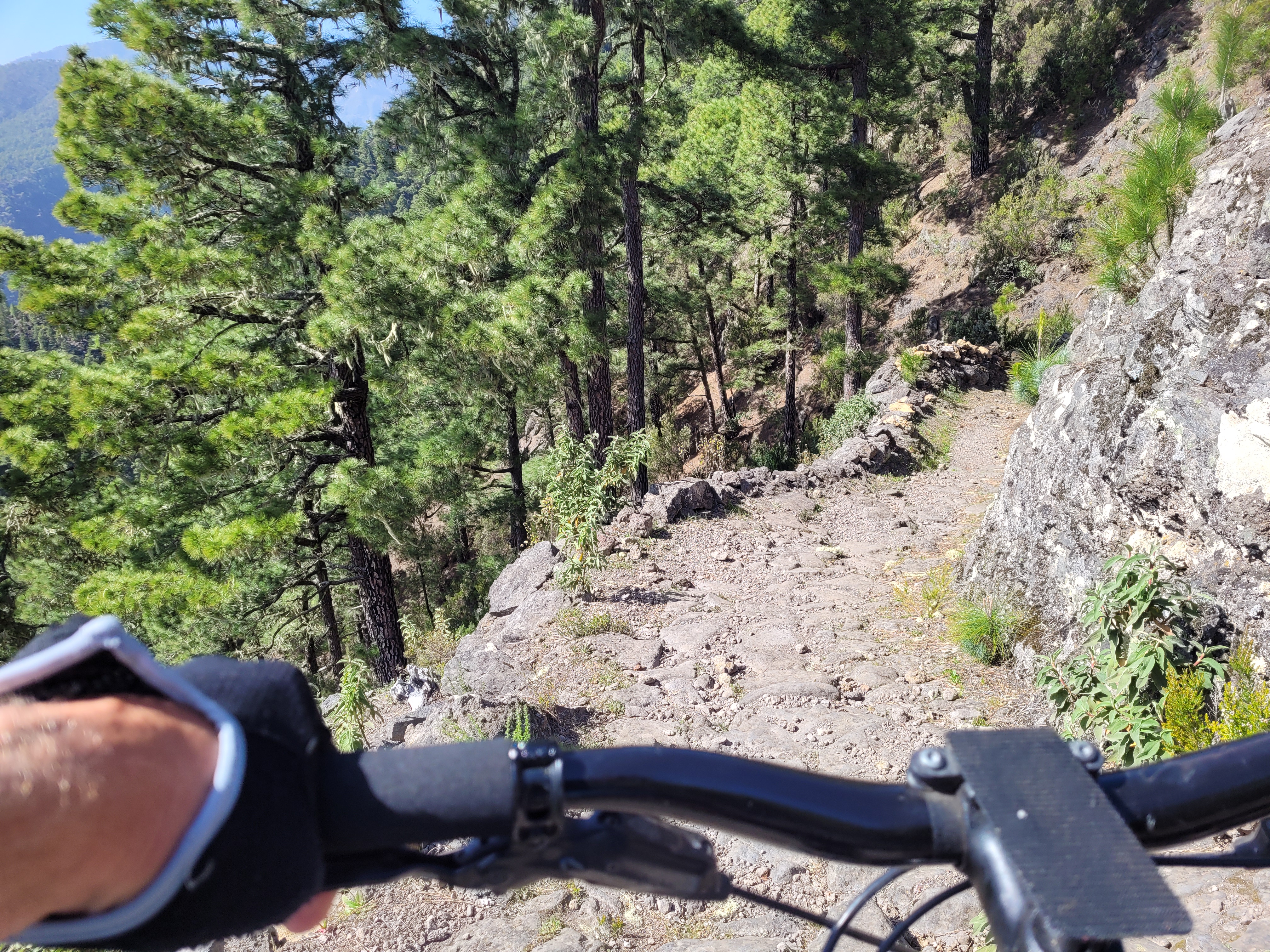 Als Abfahrt nach den östlichen Flowtrails und dem östlichen Uphill zurück in den Westen wähle ich den PR-LP1, zentraler Wanderweg über La Palmas Rückgrat. Schöne viele Holperserpentinen mit genialer Stravaflowvariante über einen versteckten Lomo... aber keinen Bock mehr zum Bilder knipsen. Shit happens.