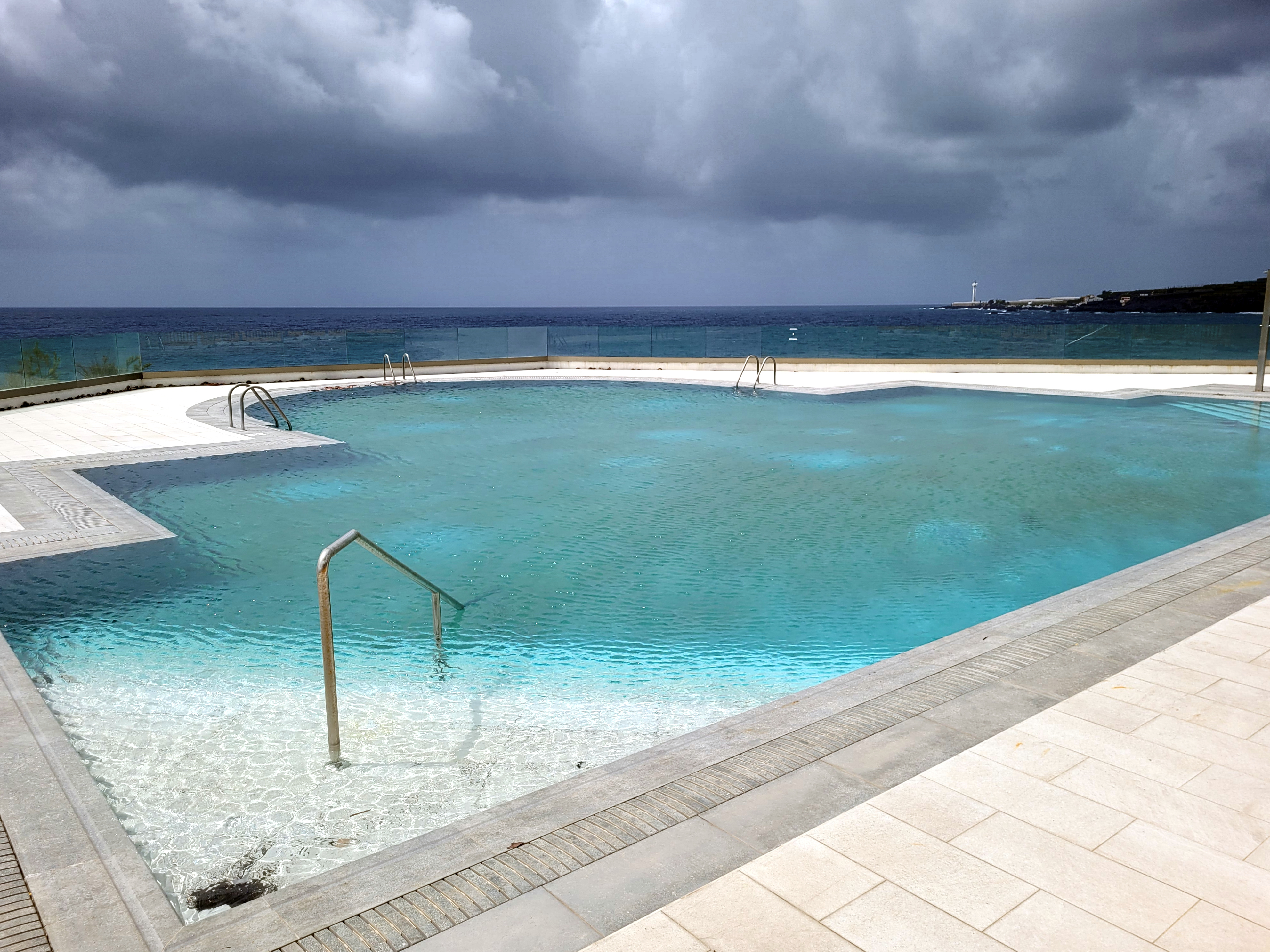 ... und in den Pool geh ich auch nicht, ist nämlich nicht unserer. Der gehört zum immer noch geschlossenen und mit Abstand größten Hotel in Puerto Naos. Gerüchteweise will das Sol Melia La Palma irgendwann im April wieder öffnen. Ob sich das für die paar "Reiserevoluzzer" lohnt?